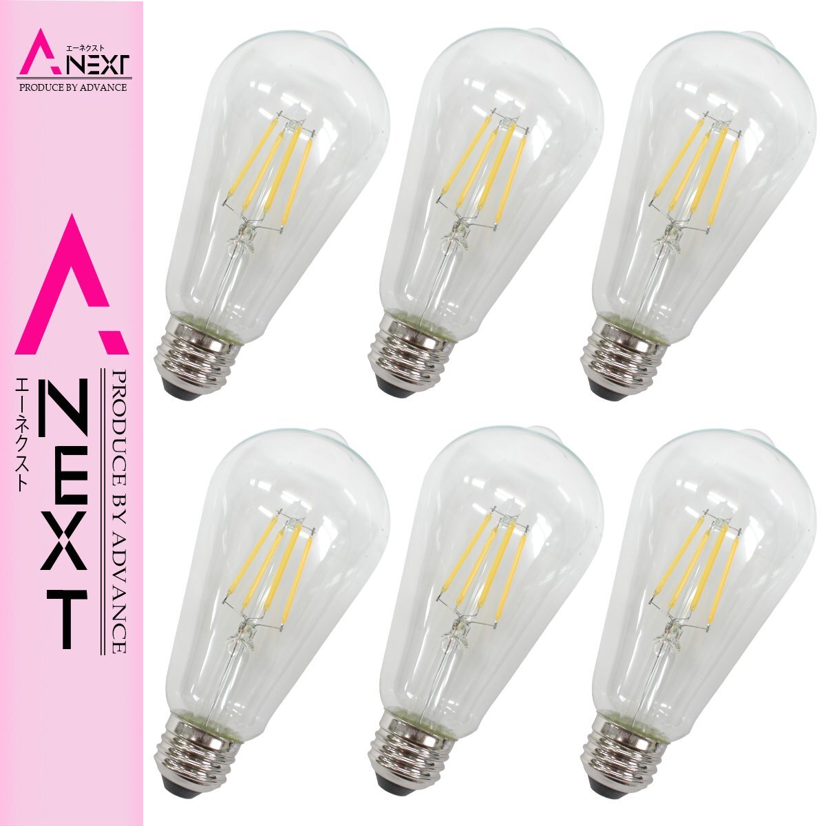 『6個 E26 エジソン電球 3000K』40W相当 ヴィンテージ LED エジソンバルブ エジソン 電球 フィラメント クリア 広配光 電球色