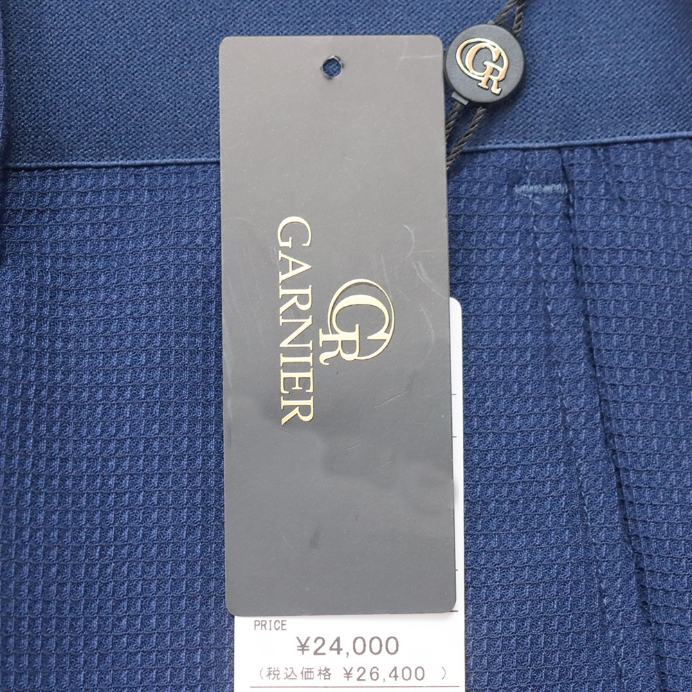 1円/24aw/GARNIER/Mサイズ/スラックス パンツ 4024570011 ワッフル快適 無地 ウエストゴム ストレッチ ガルニエ 新品/青/ブルー/ma468/