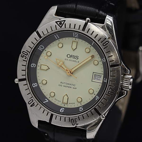 1円 稼働 オリス ダイバー 7401 AT/自動巻 クリーム文字盤 メンズ腕時計 3973200 12TLT MTY