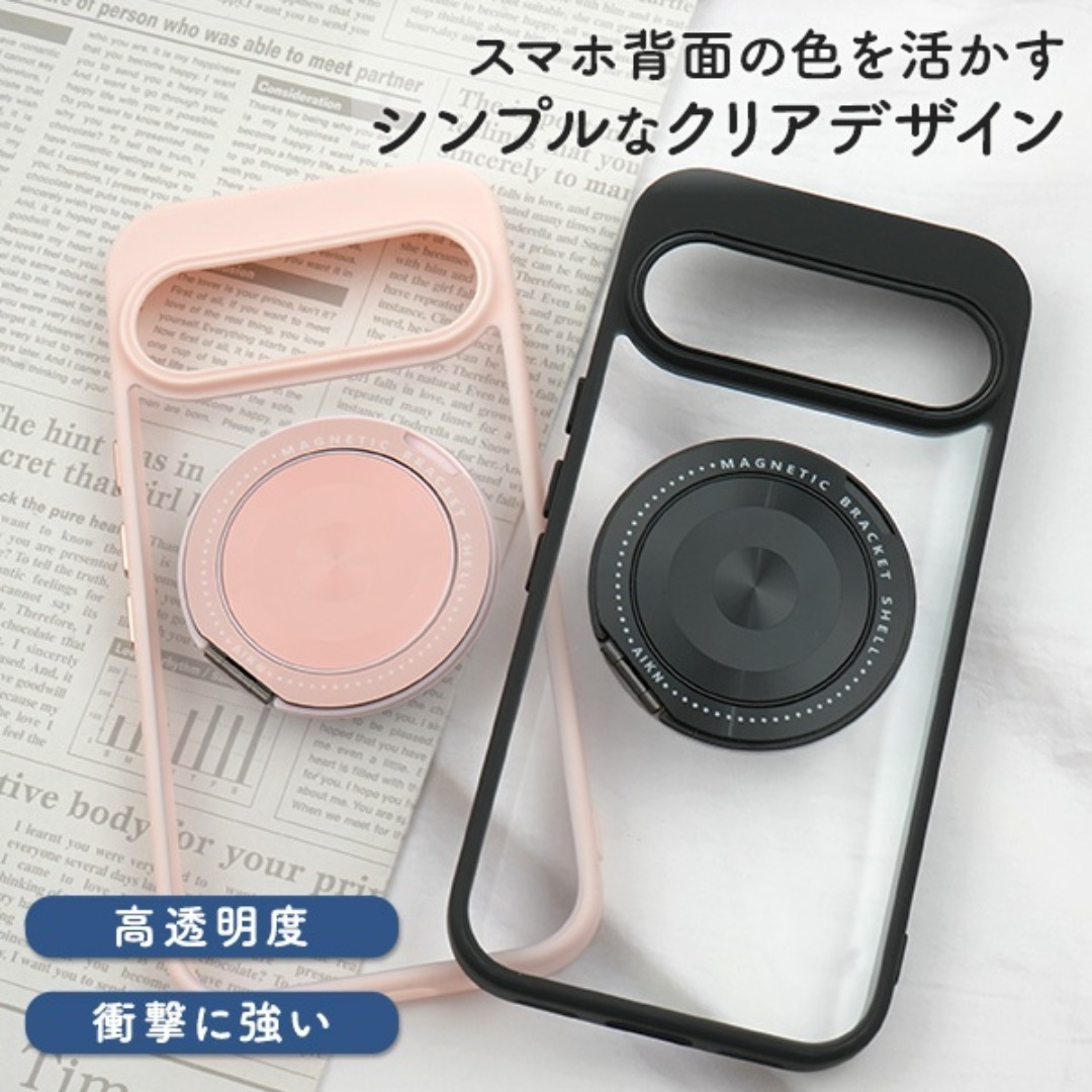 スマホ背面の色を活かす、シンプルなクリアデザインです。
