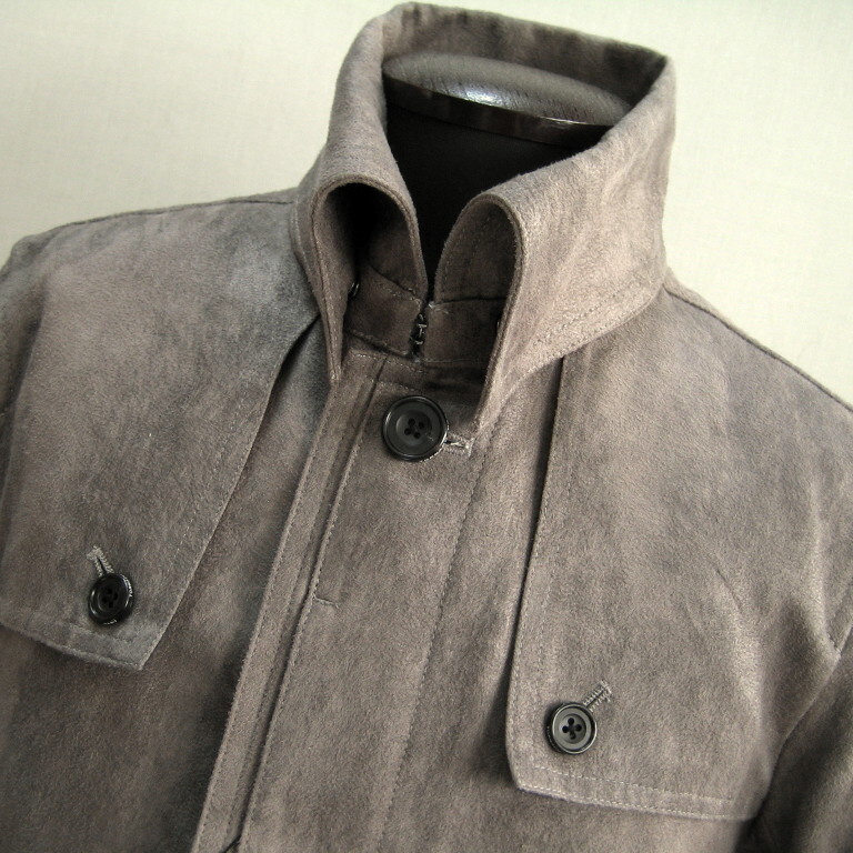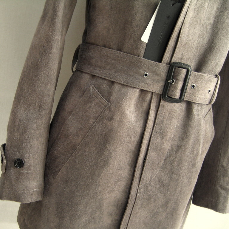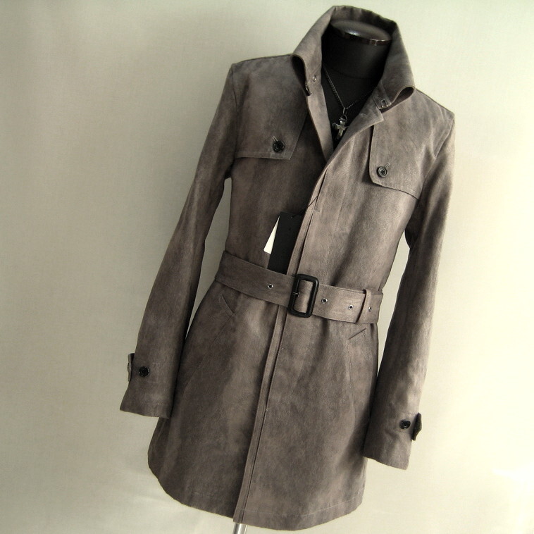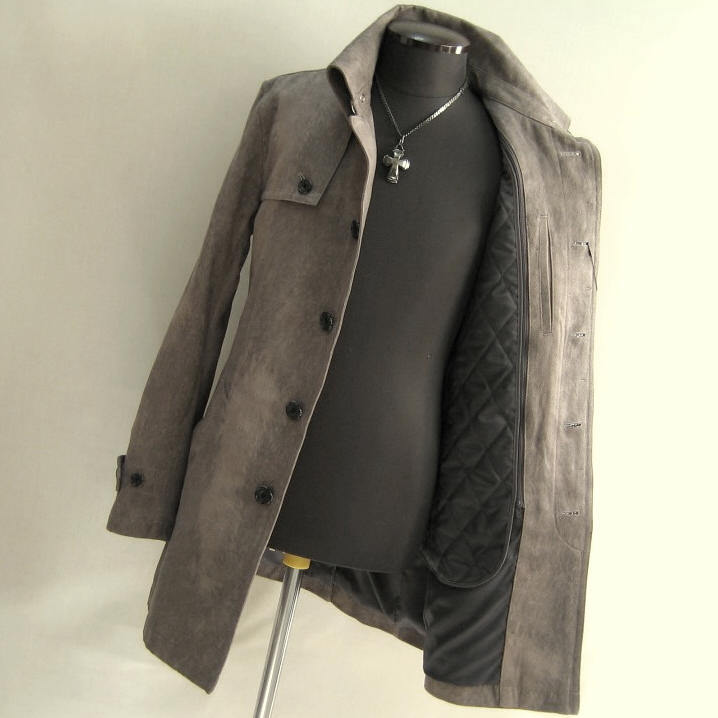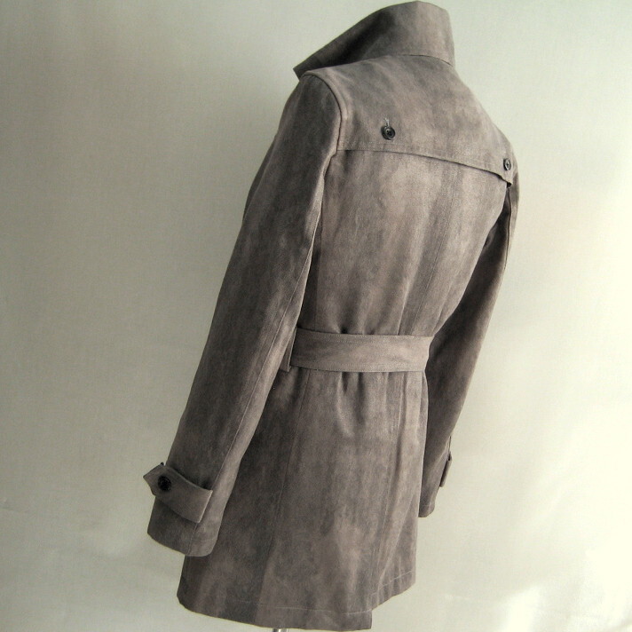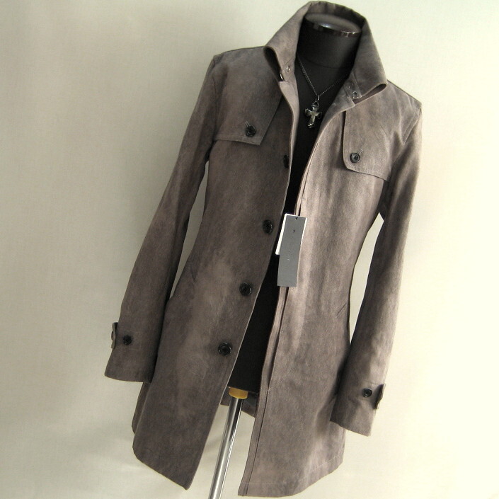 ■T/Cスエードの中綿ライナー付き返し衿シングルトレンチコート