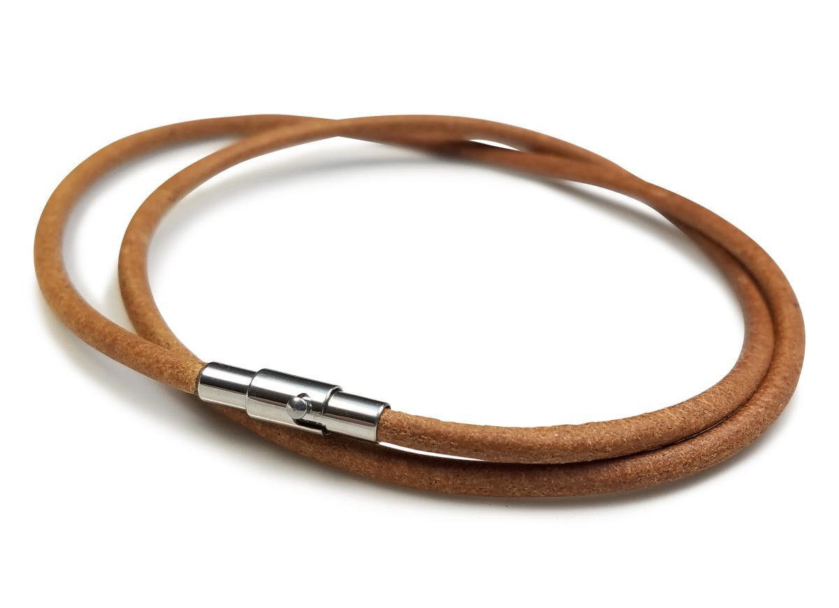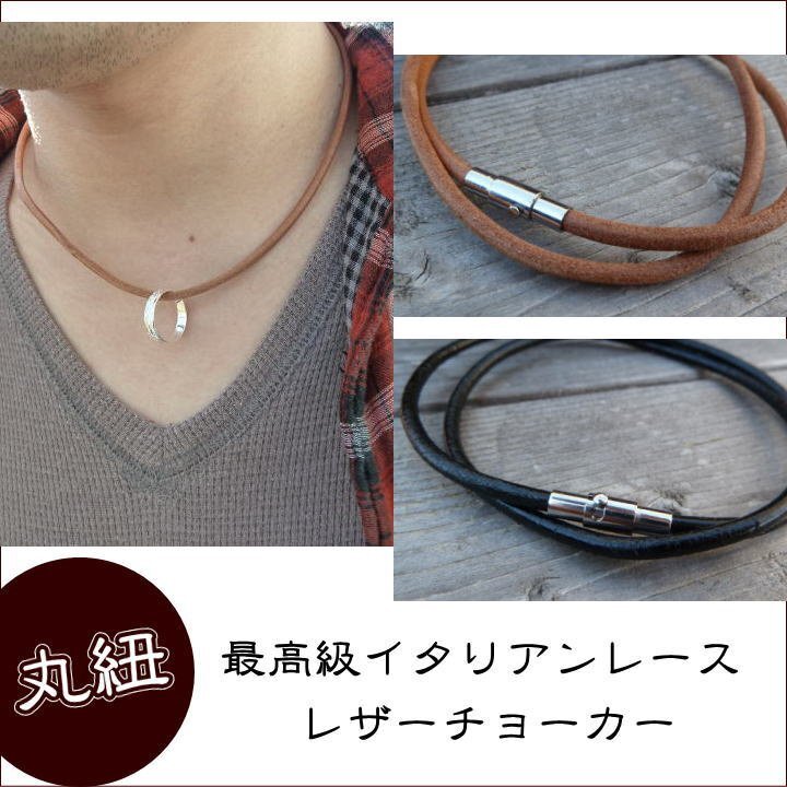レザーチョーカー牛革丸紐◆3mm/50cm茶色マグネット金具国産本革サーファースケーターバイカープレゼントギフト贈り物誕生日記念日