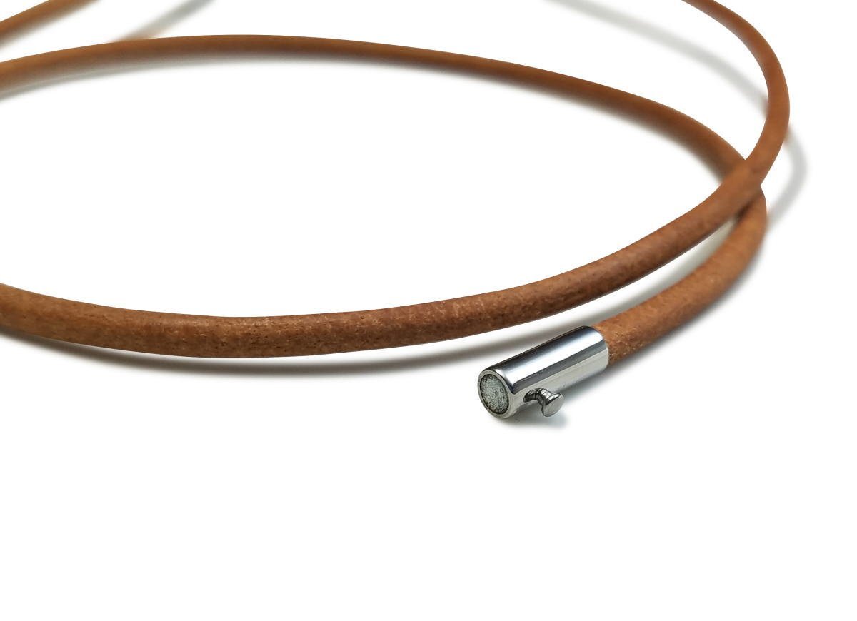 イタリアから取り寄せた上質な牛革を丸紐加工しネックレスに仕立てました。