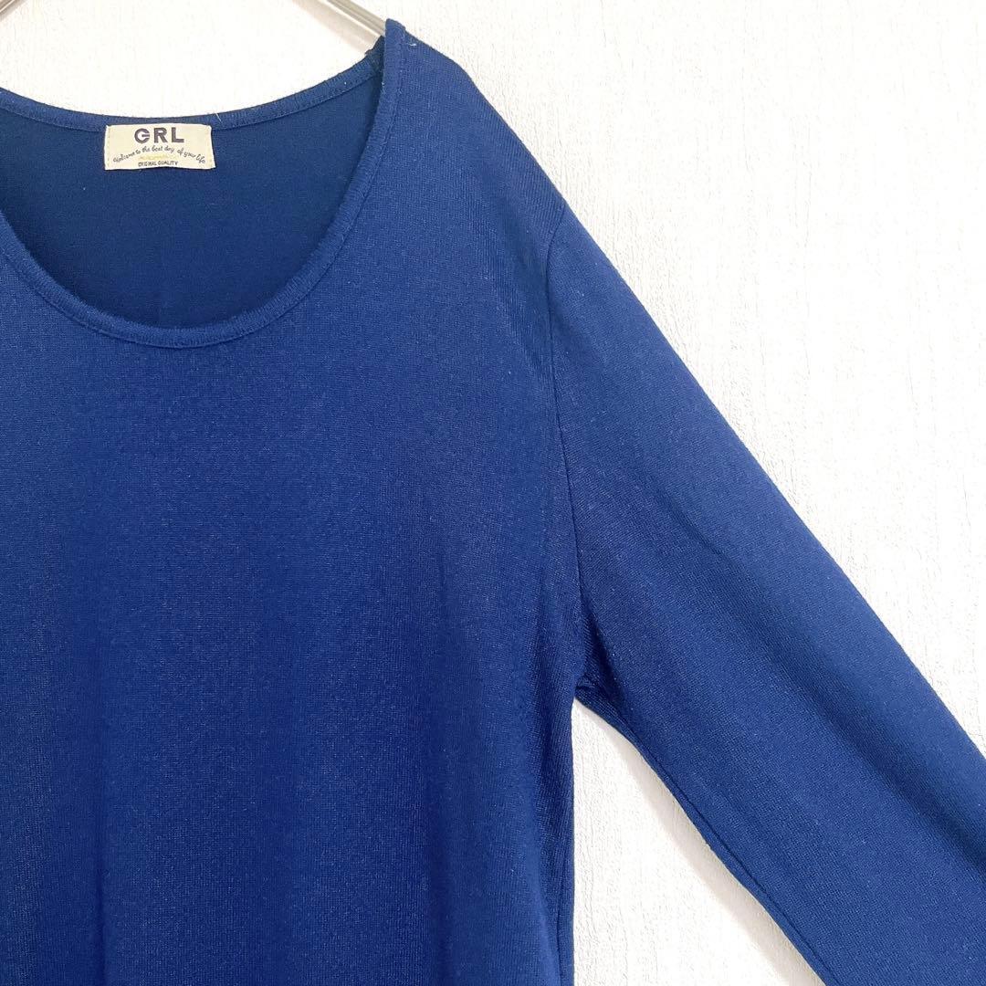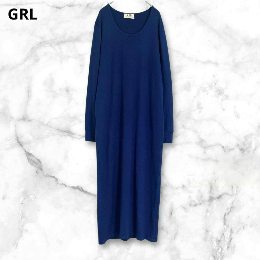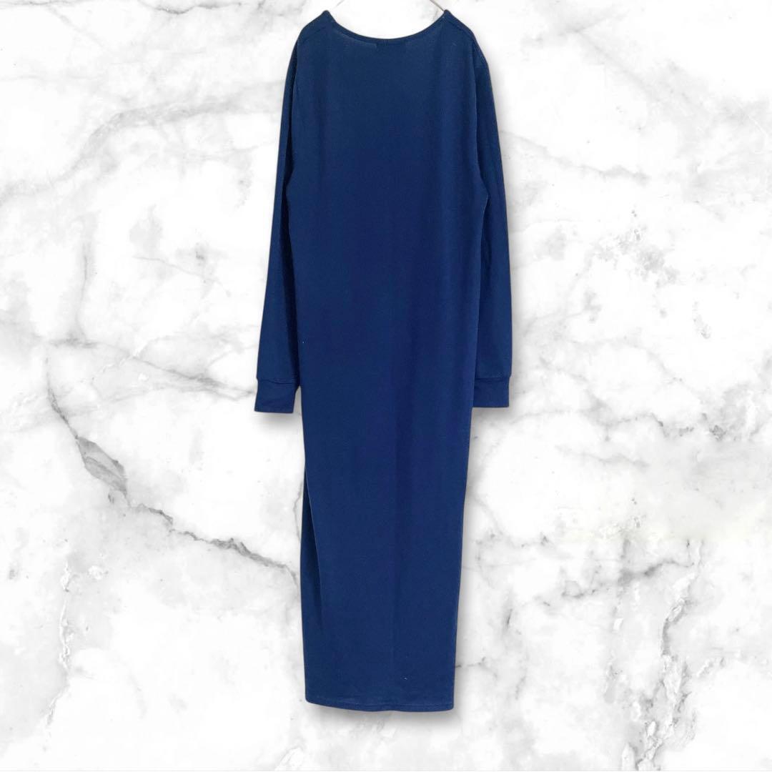 グレイル ネイビー ロングワンピース 長袖 L ゆったり 薄手 シンプル 無地 E8D309