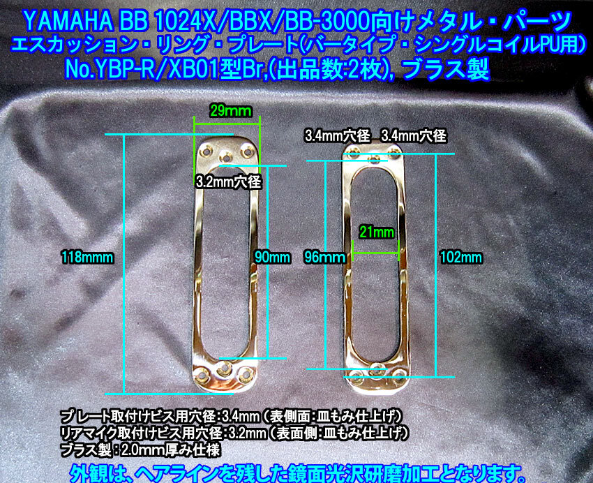 *手作り品* YAMAHA BB1024(BB3000,BB2000,BBX/他機種共通部品)向け 特製 リア用エスカッションリングプレート/ブラス製,1枚出品(出品数2枚)