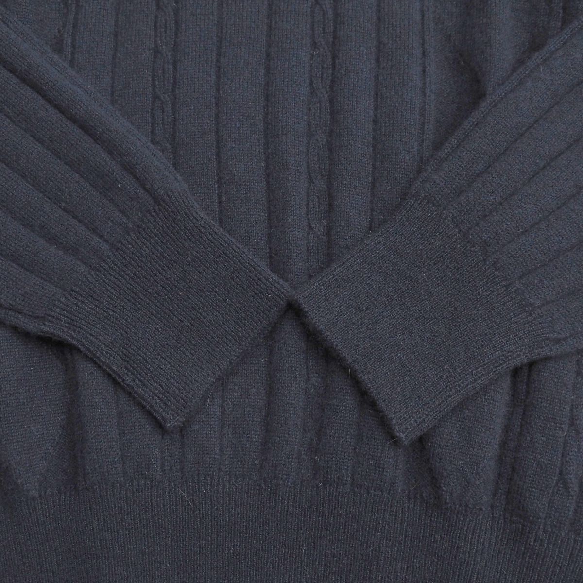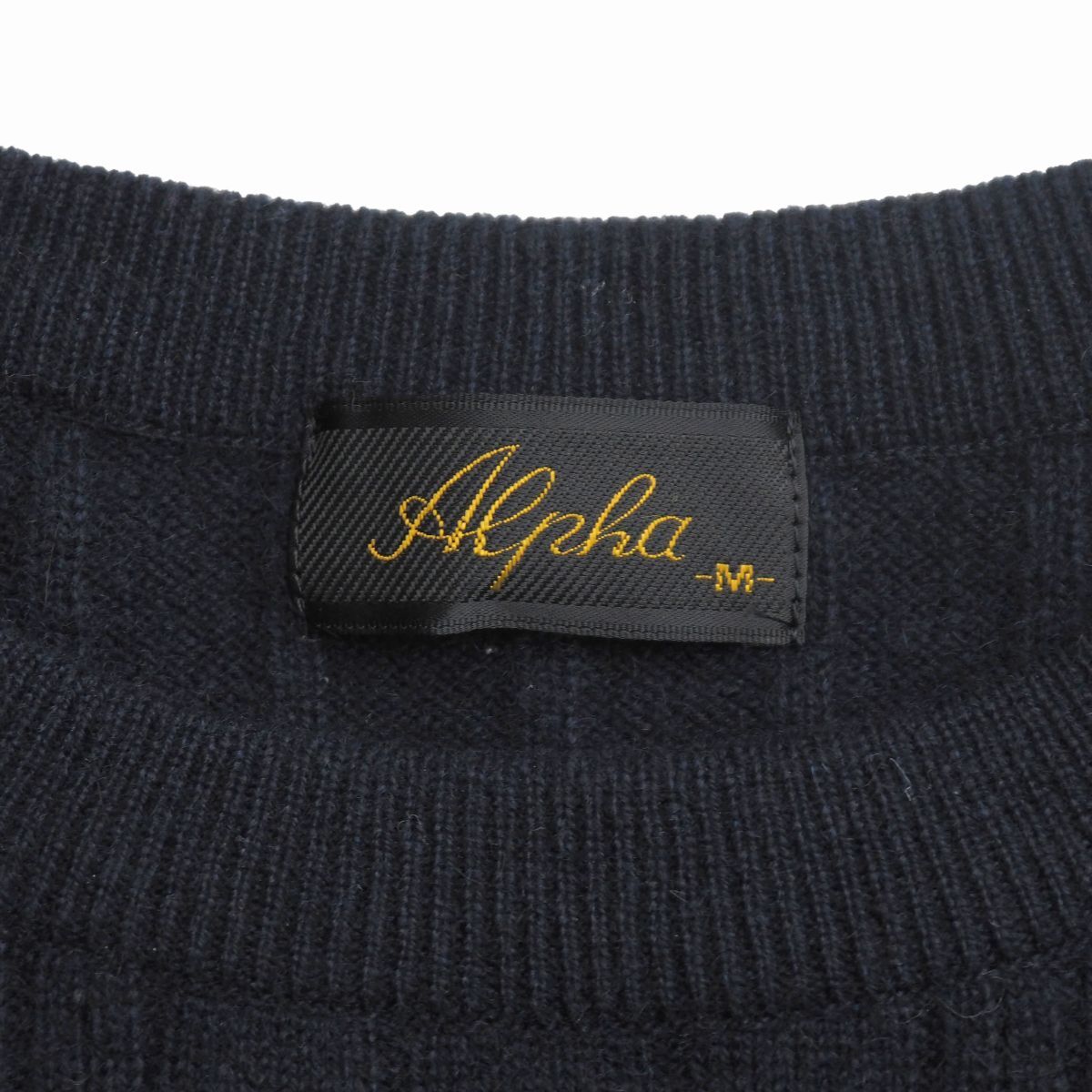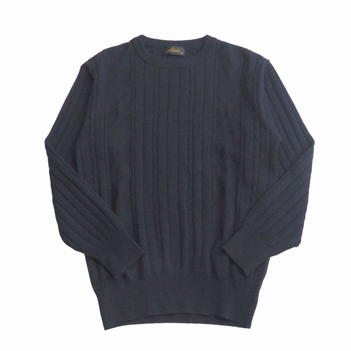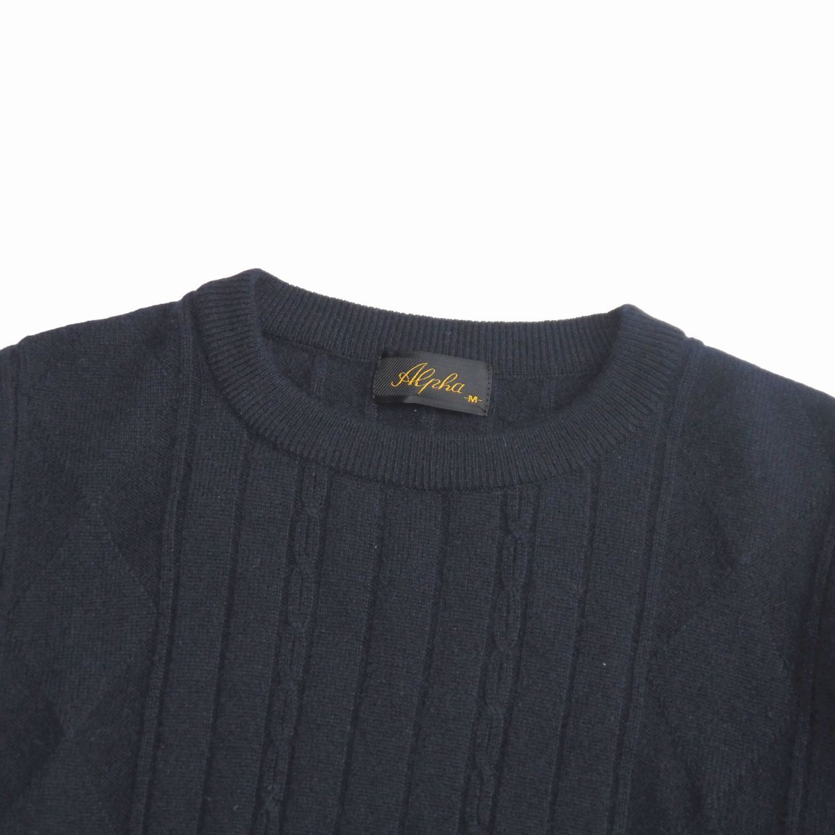 | TJ7655+日本製*ALPHA/アルファー*メンズM*総カシミヤ*ニットセーター*クルーネック*ダイヤ柄/ケーブル編み*ネイビー系 | |||