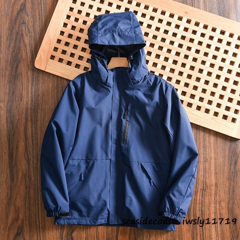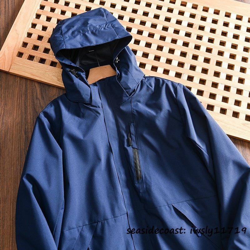 新品■マウンテンパーカ メンズ フード付き フリースジャケット 裏起毛 ボアジャケット 防風防寒 撥水 アウトドア アウター ネイビー 4XL