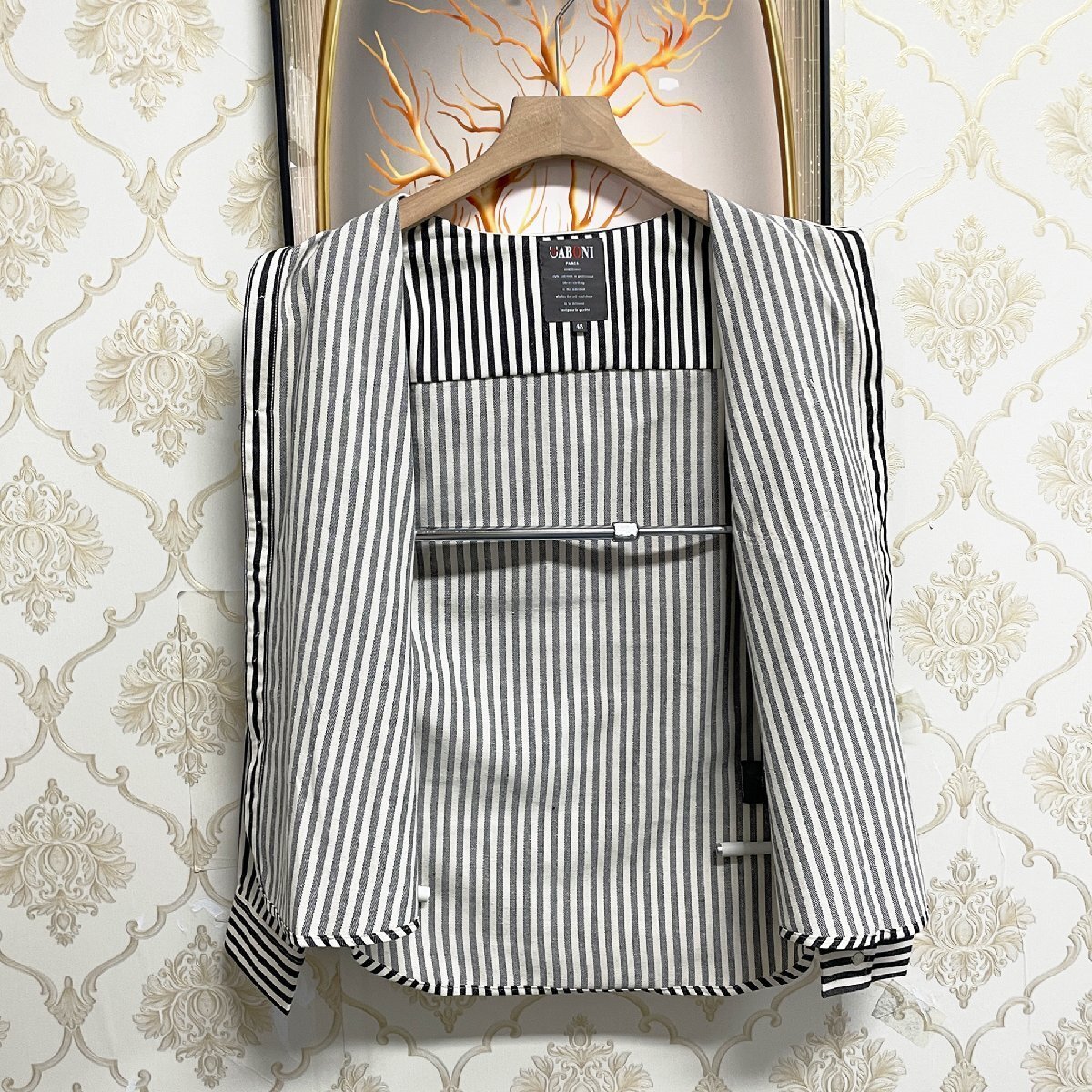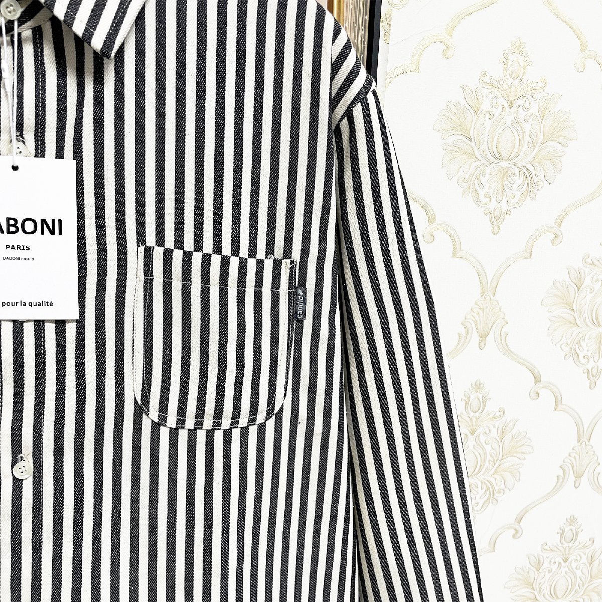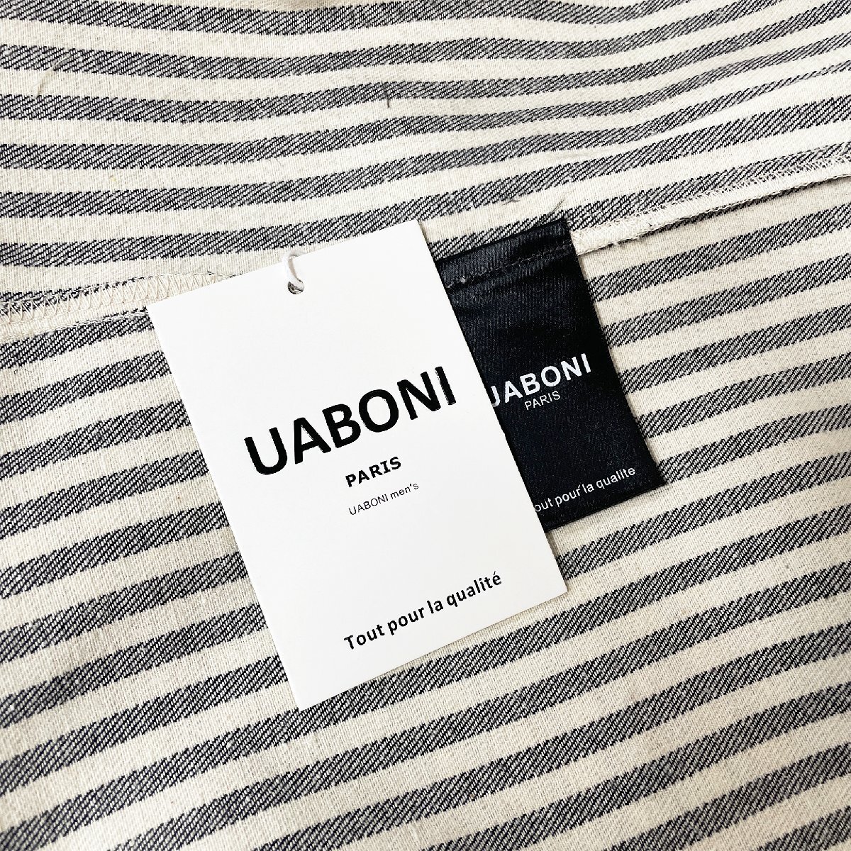 人気EU製&定価4万◆UABONI*Paris*長袖シャツ*ユアボニ*パリ発◆綿混 快適 耐久 ストライプ柄 折り襟 ゆったり ジャケット 通学 普段着 M/46サイズ