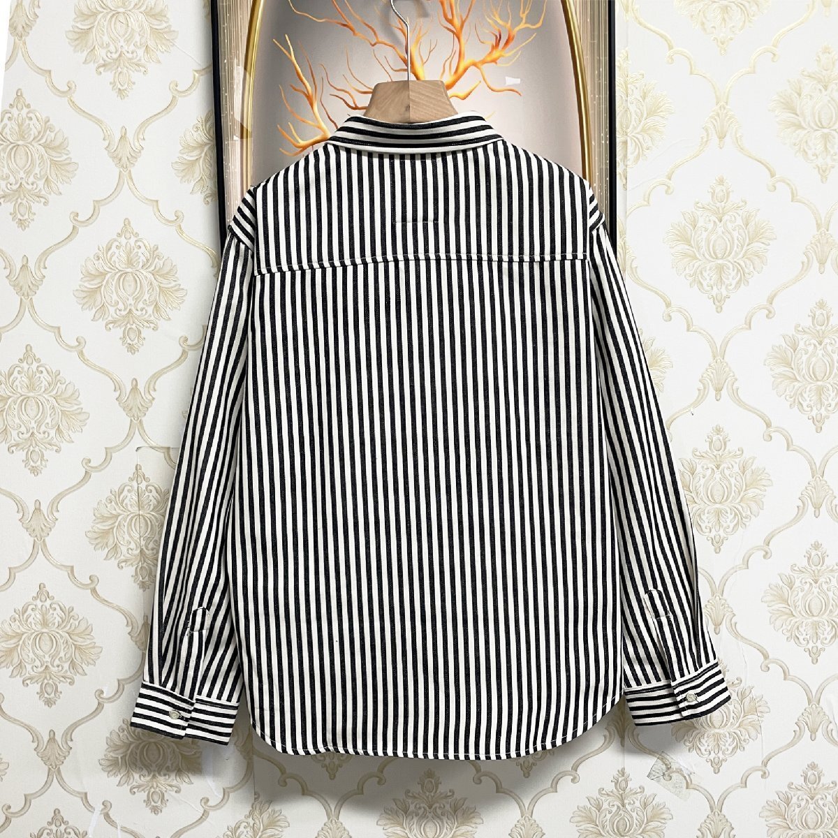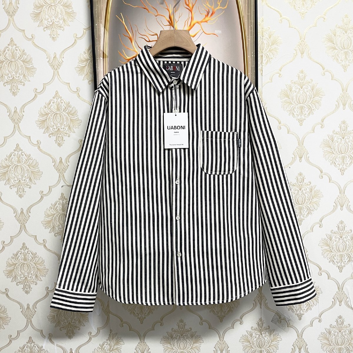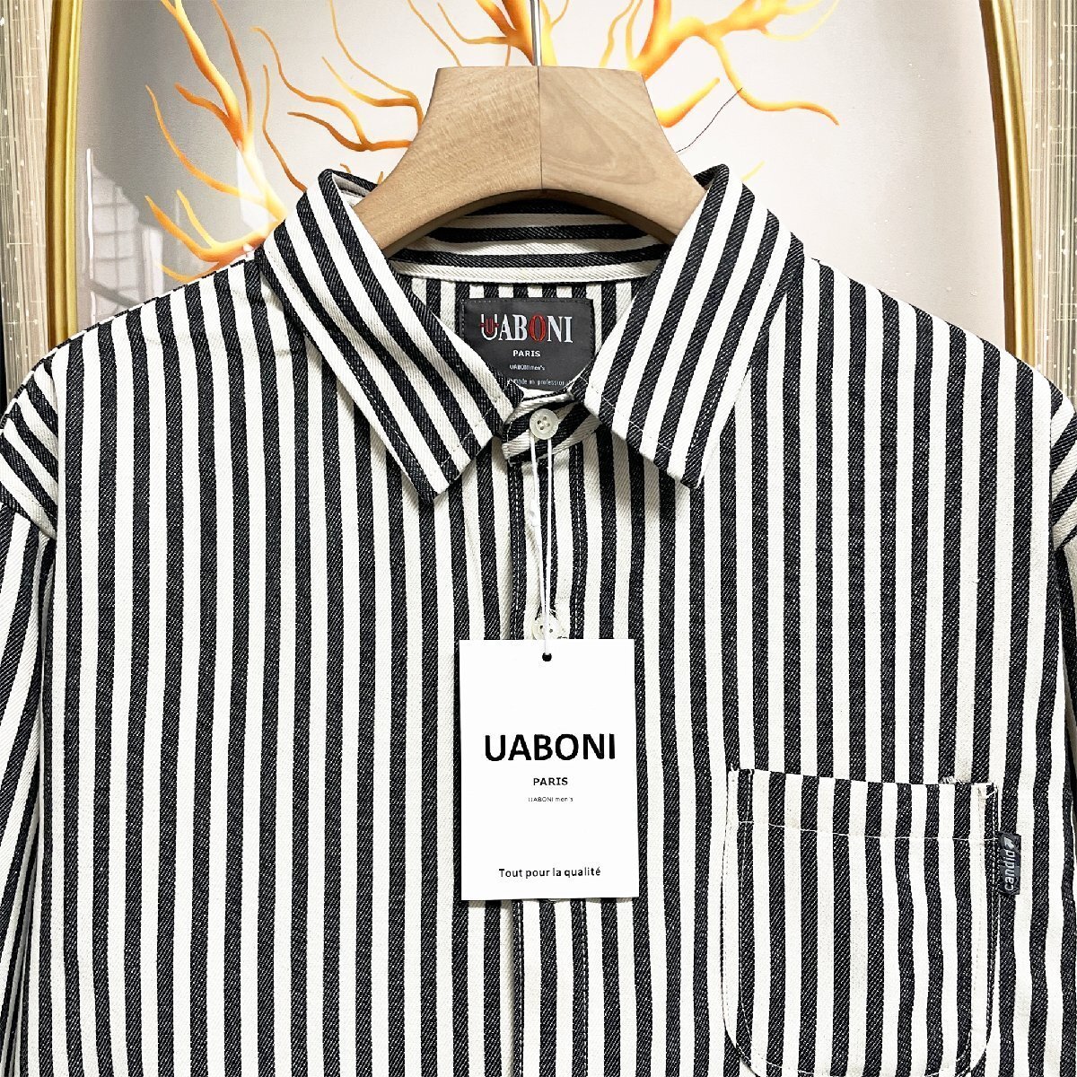 人気EU製&定価4万◆UABONI*Paris*長袖シャツ*ユアボニ*パリ発◆綿混 快適 耐久 ストライプ柄 折り襟 ゆったり ジャケット 通学 普段着 M
