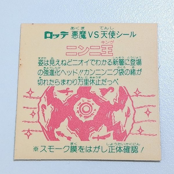 | ロッテ 旧ビックリマン チョコ版 26弾 ヘッド ニンニ王 スモーク膜あり 文末あり ※11枚目以降の画像はこちらでご覧になれます。 |