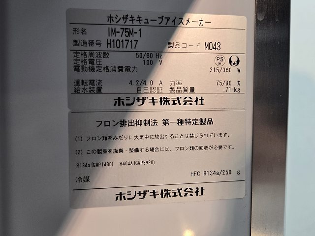 | 貯氷量 | 自然落下時貯氷量:35kg 最大ストック量:50kg |