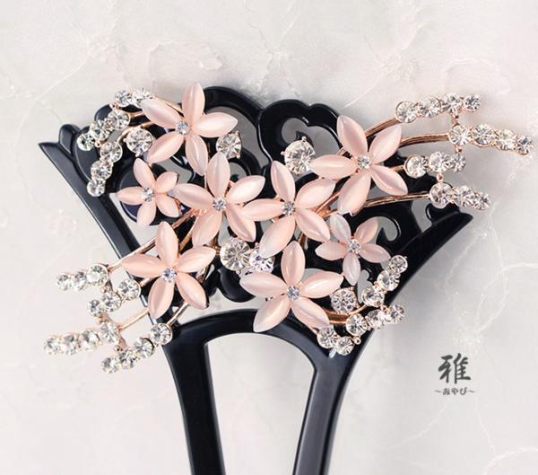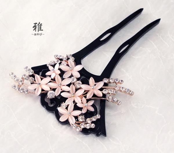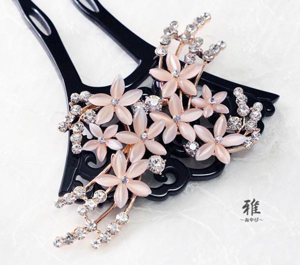 【 雅 】 キャッツアイが素敵♪猫目石の綺麗なお花 透かし扇 かんざし