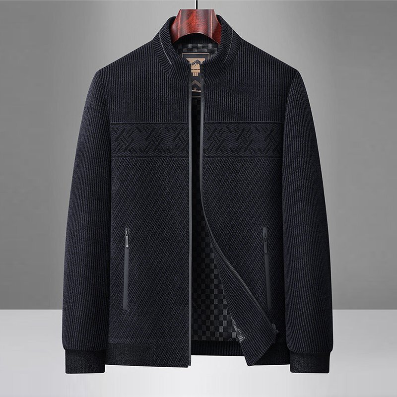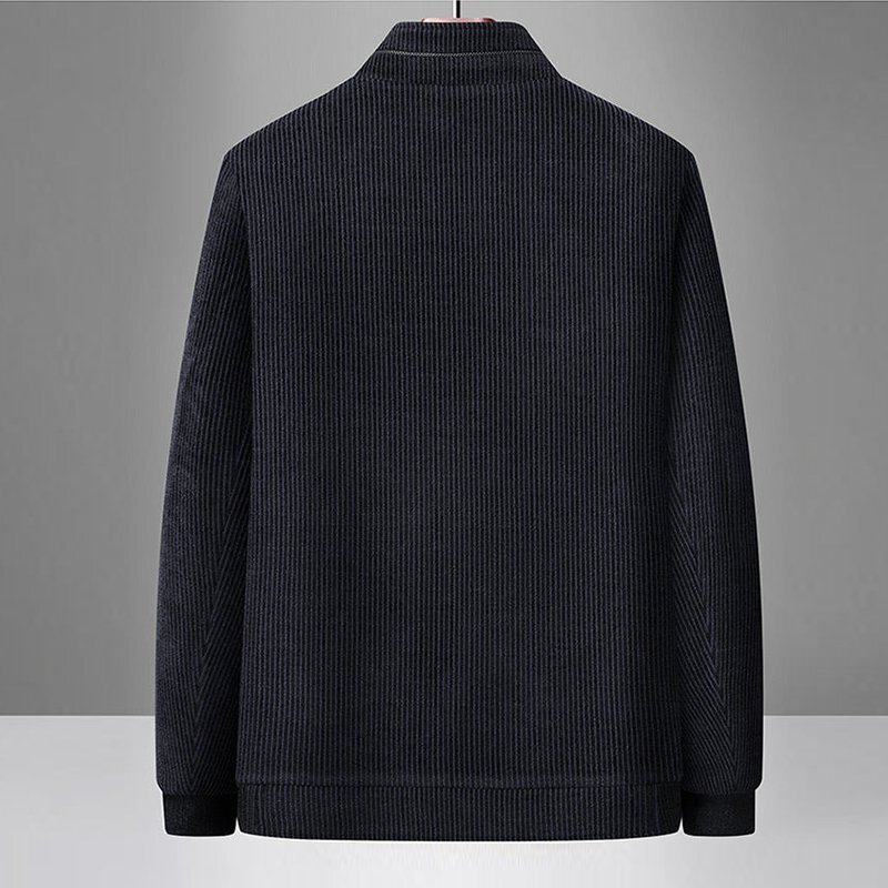 立ち襟デザインがスマートな印象を演出し、袖口やリブ仕様の裾が冷気の侵入を防ぎつつ、着こなしをすっきりとまとめます。