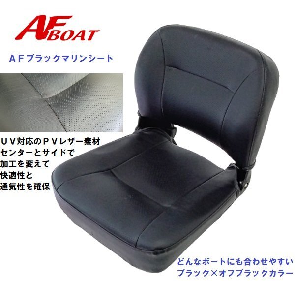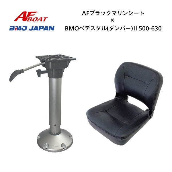 ★サイズ:W455×D410×H442mm ★背もたれの厚み:48mm ★座面高さ:105mm ★カラー:ブラック×オフブラック ★表面生地:UV対応PVレザー ★座面サイド部:オフブラックPVレザー ★底部材質:マリン対応PP製 ★底部ネジピッチ:約128×128 ★付属品:取り付け用ビス4本 ※ワンタッチ折りたたみ可能、ヒンジ部はステンレスと強化樹脂製、底部は強化樹脂製 ペデスタル詳細 ■品番:30C0065 ■高さ調節方法:エアーダンパー仕様(無段階) ■天面板厚(mm):10 ■天面サイズ(mm):170×170 ■底面サイズ(mm):Φ230 ■材質:アルミ/樹脂 ■高さ調節幅:500-630mm ■重量:4kg ★コメント AFボートオリジナル AFブラックマリンシート ブラックカラーのマリンシートで汚れが目立ちにくく、レザーシートのような風格 素材はPVレザー採用 防水構造で水に強く耐久性抜群! 弊社企画でマリンシートメーカーのOEM製品 折り畳みができる構造で、ヒンジ部はステンレスと強化樹脂製、底部は強化樹脂製で腐食・錆がありません 耐水・耐候性は素晴らしく、耐用年数5年以上を想定したモデル! | ||||