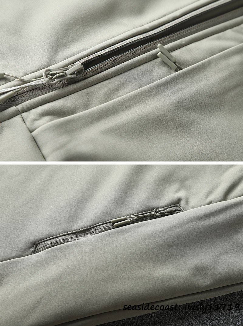新品*マウンテンパーカー メンズ フリースジャケット フード付き 撥水 防風 防寒 秋冬 アウトドアウエア アウター 登山 釣り カーキ 2XL