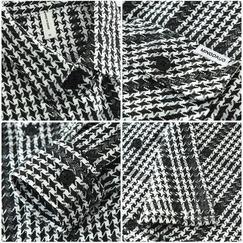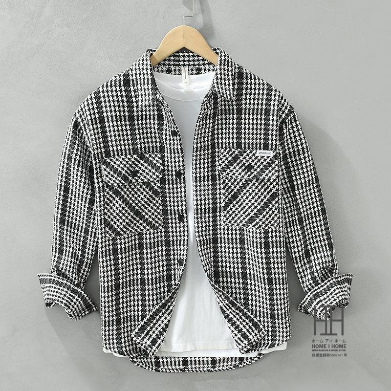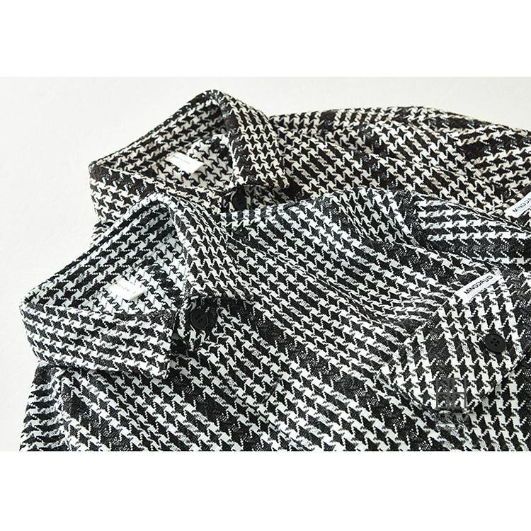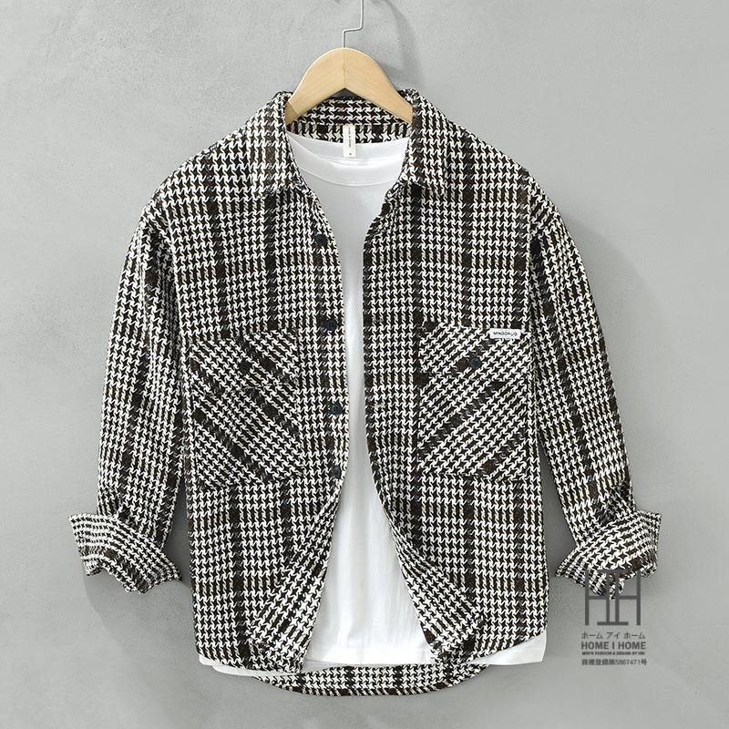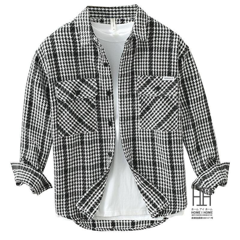 チェックシャツ シャツ メンズ 長袖 千鳥格子 チェック柄 柄シャツ シャツジャケット カバーオール 両ポケット ワークシャツ アウター 羽織り 春 春服 秋 冬