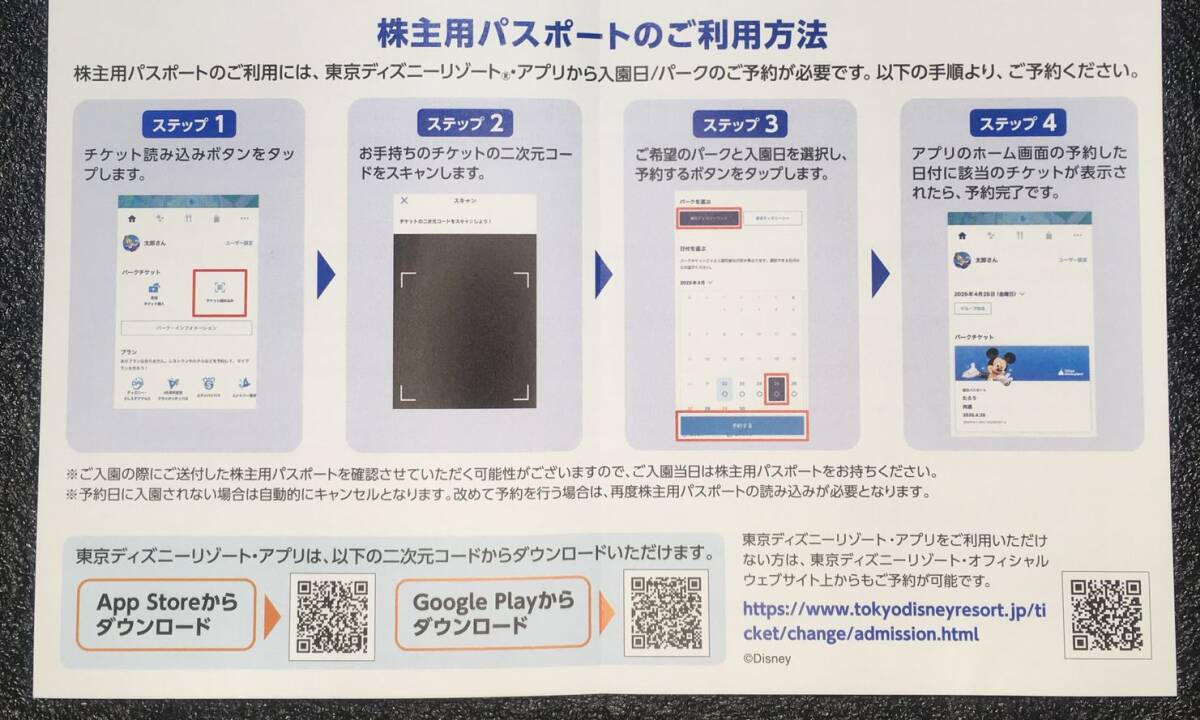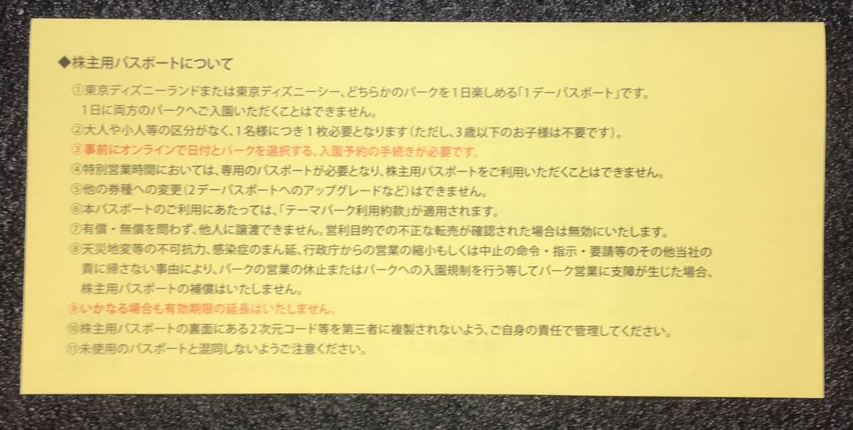 ・その他注意点などは同封資料の裏書き、ディズニーリゾート(オリエン