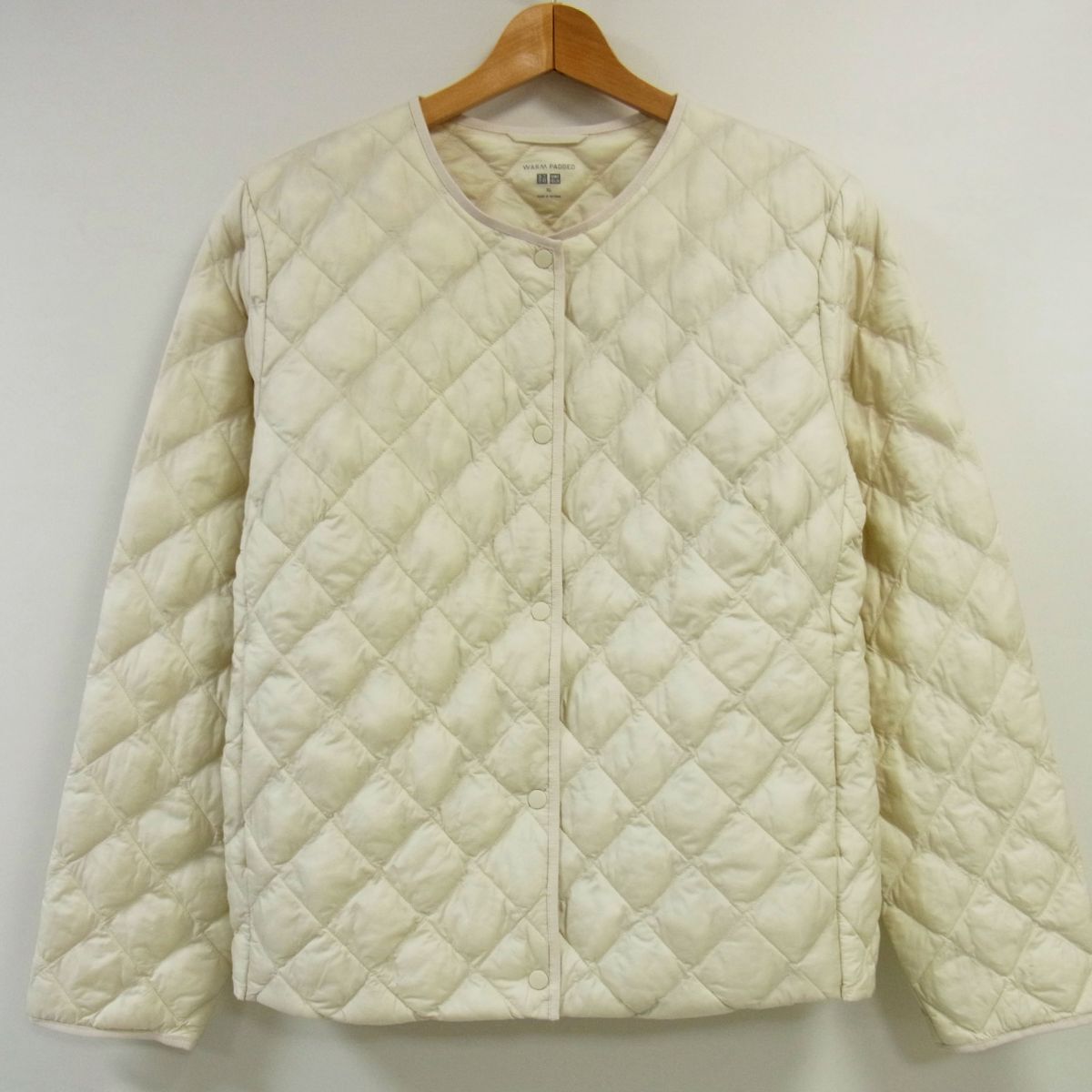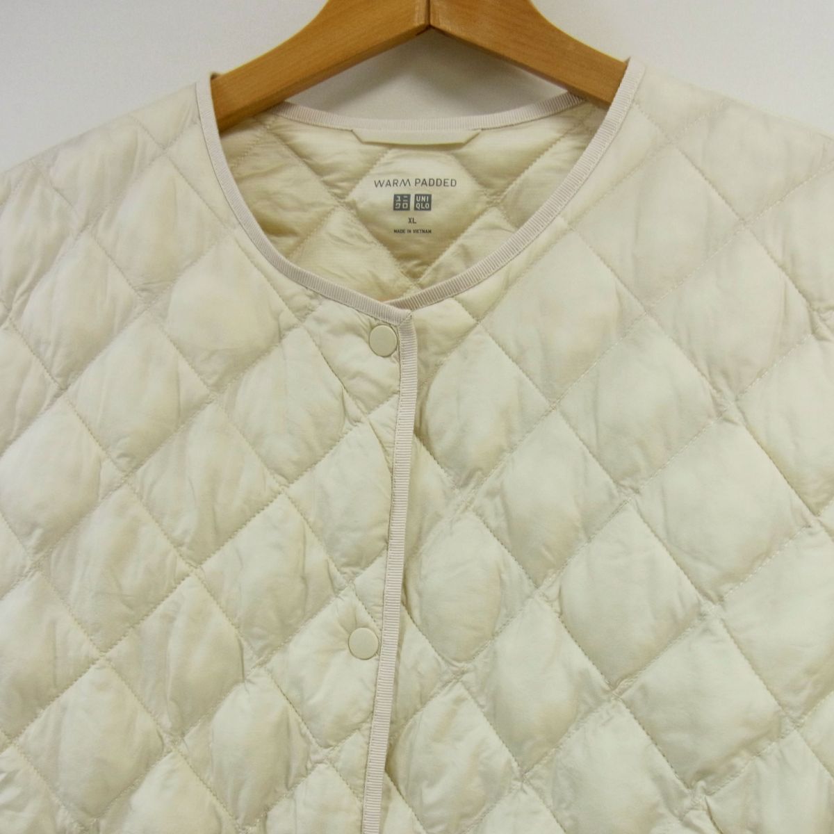 美品 UNIQLO ユニクロ パフテックキルティングジャケット ウォームパデッド ノーカラーカーディガン XL レディース 襟調節ボタン