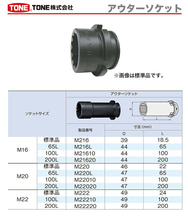【新入荷】【オススメ】〈トネ〉 シャーレンチ用 アウターソケット M22020