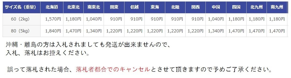 | 発送に関する注意事項 | |||||