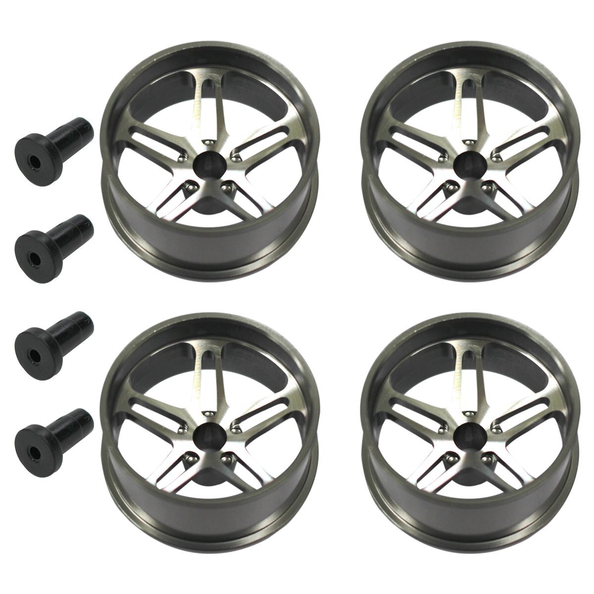 【送料無料】ミニ四駆用 4個セット アルミホイール ブラック デュアル 5スポーク 5穴 ローハイトタイヤ ホイル ホイール グレー ガンメタ