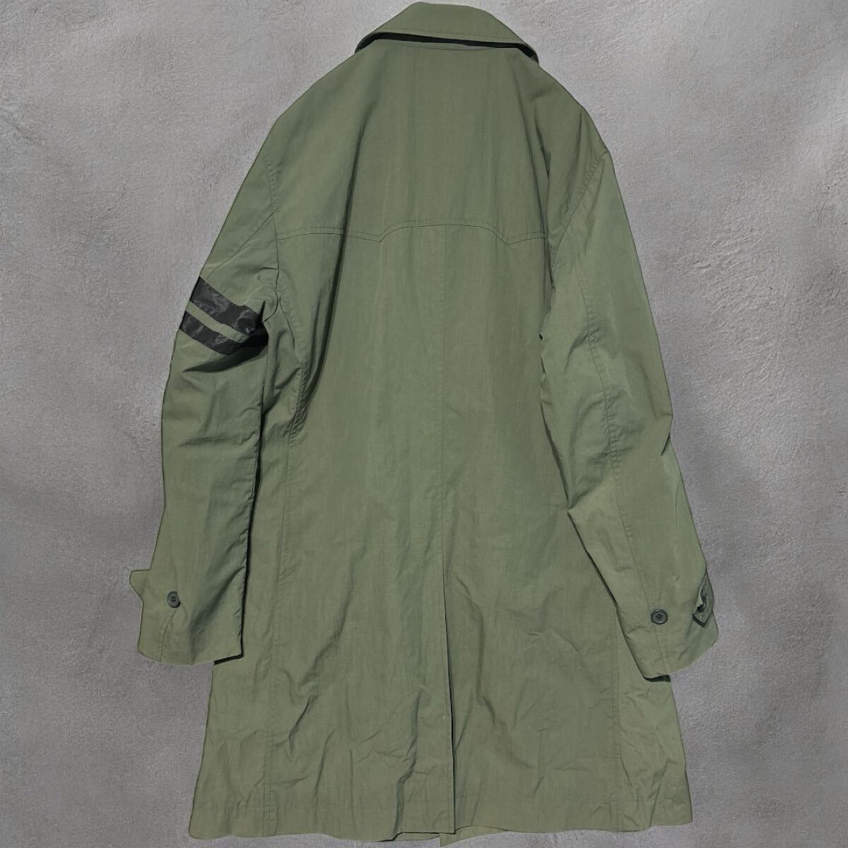カーキ ロングコート ステンカラーコート ブラックのラインがポイントです。