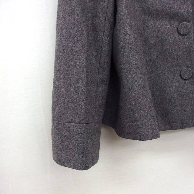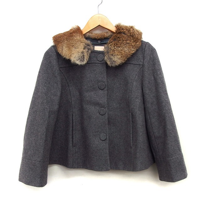 ビームスハート BEAMS HEART 2way ジャケット シングル ショート丈 ラビットファー ノーカラー タック ウール混 灰 /HT10 レディース