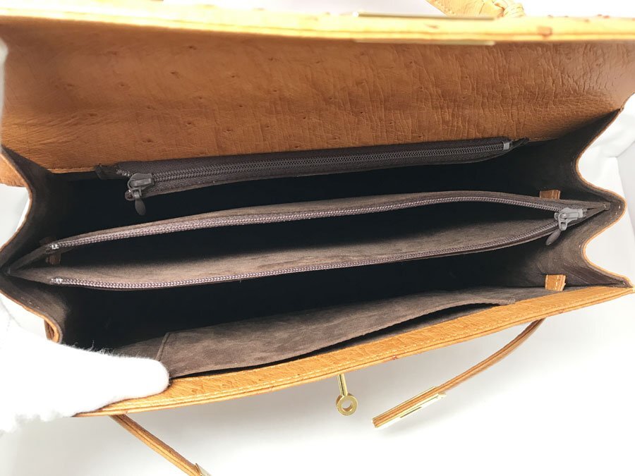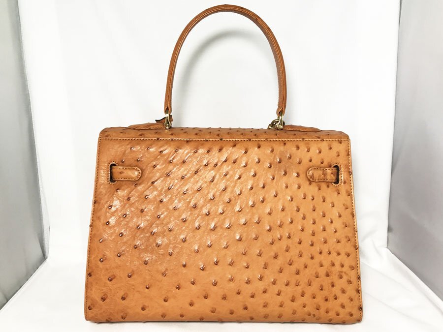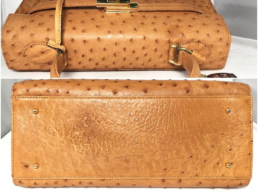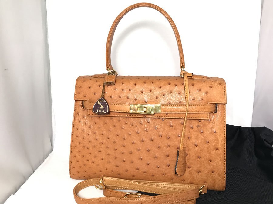 ◆JRAタグ付き ほぼ未使用!美品! オーストリッチ 2WAY ハンドバッグ レザー キャメル purty club ショルダーストラップ・保存袋付