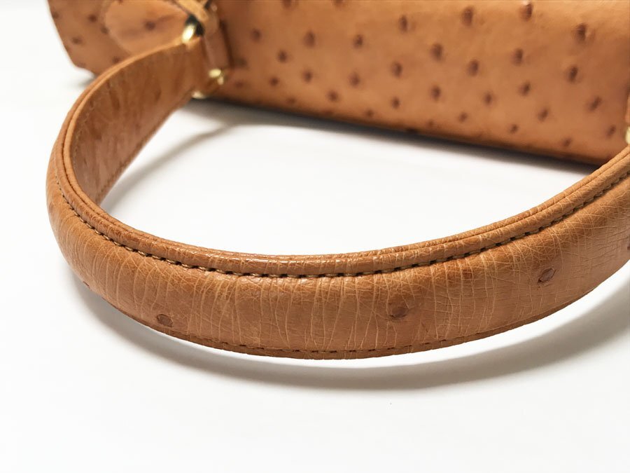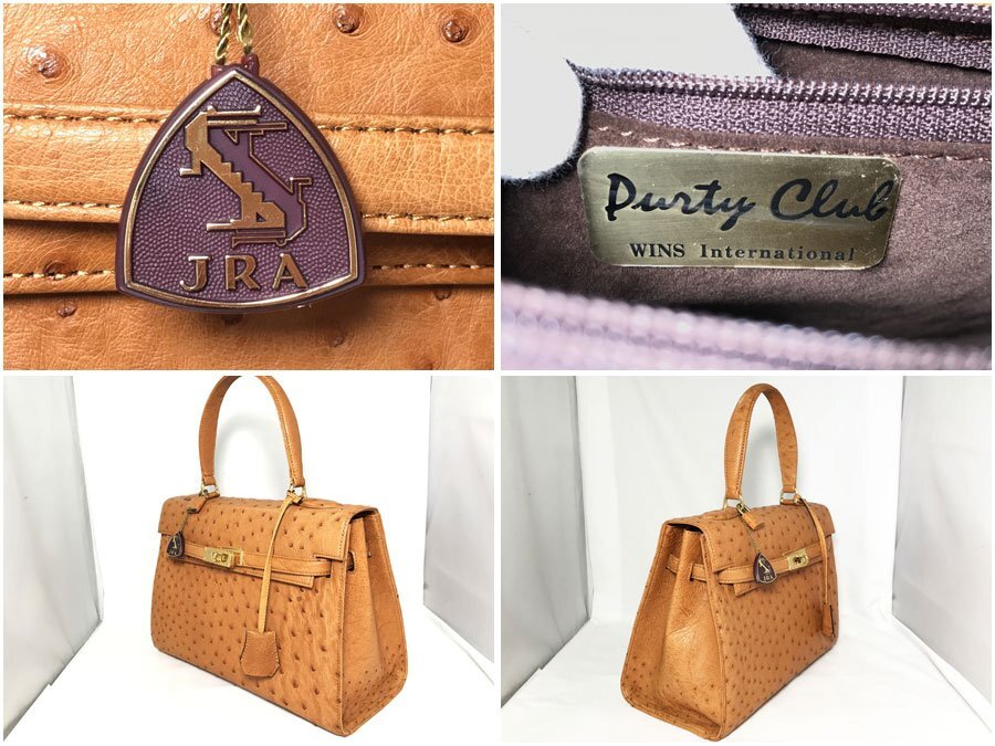 ●商品名 ◆JRAタグ付き ほぼ未使用!美品! オーストリッチ 2WAY ハンドバッグ レザー キャメル purty club ショルダーストラップ・保存袋付