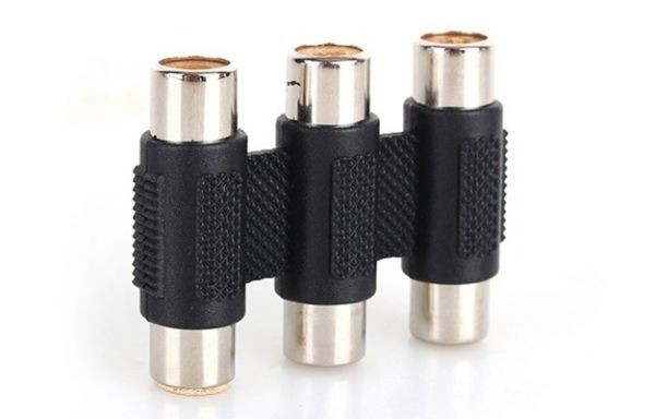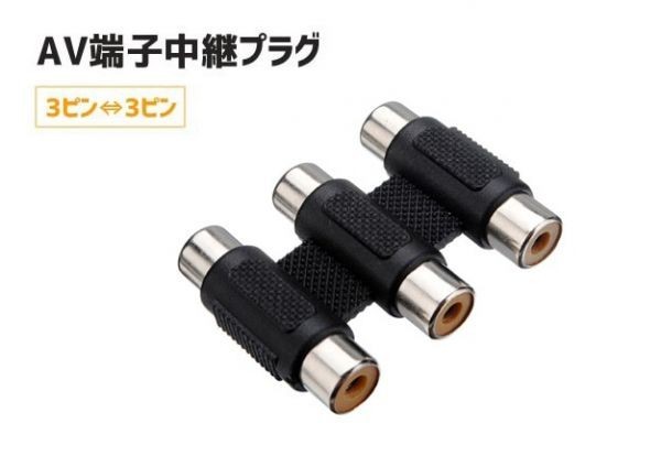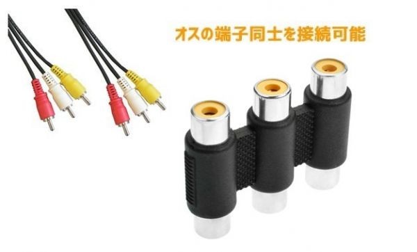 三連AV端子中継プラグ RCA端子中継アダプタ 3ピンのオスケーブル同士を接続可能 ビデオケーブルの延長に メッキ加工 RCA3SET