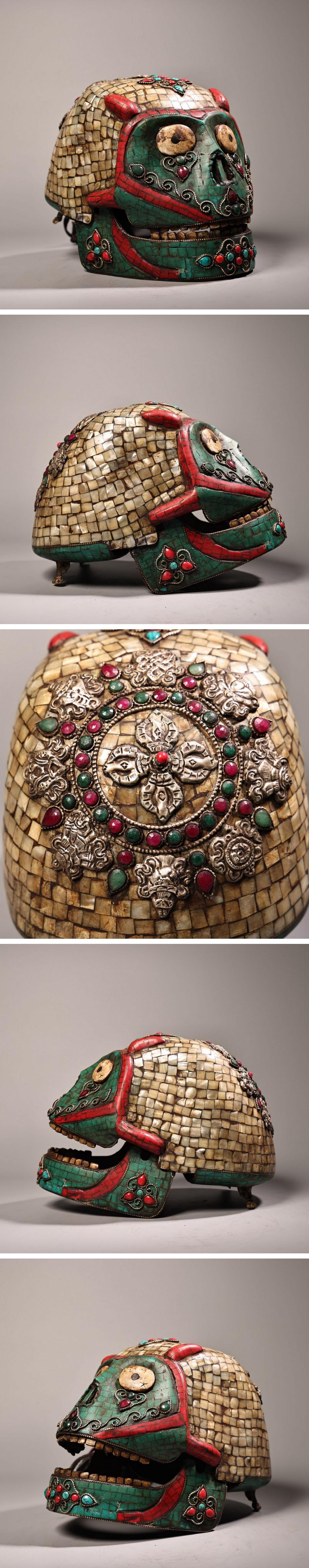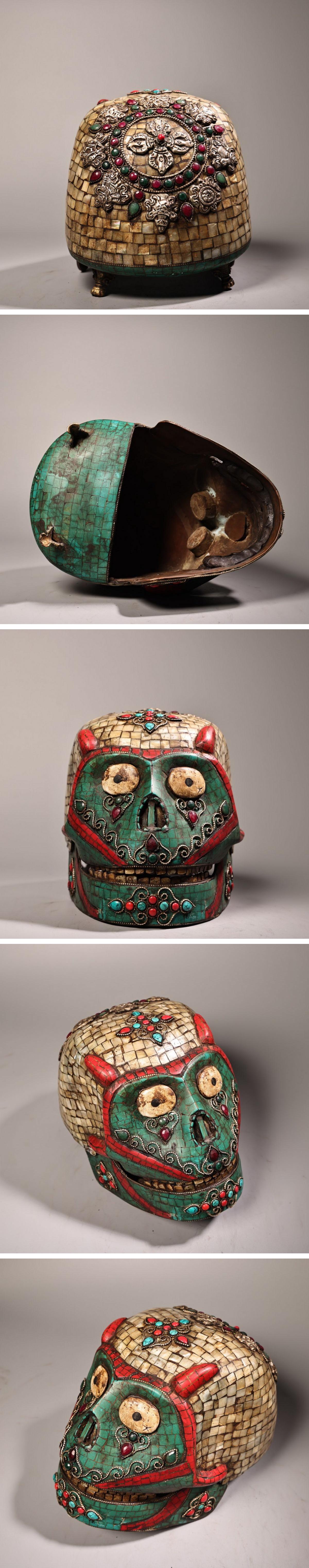 【清】関西某オークション購入 中国・時代物 密教法器 猿頭紋置物 象嵌松石 極細工 古置物 古擺件 中国古美術7L10-SA3