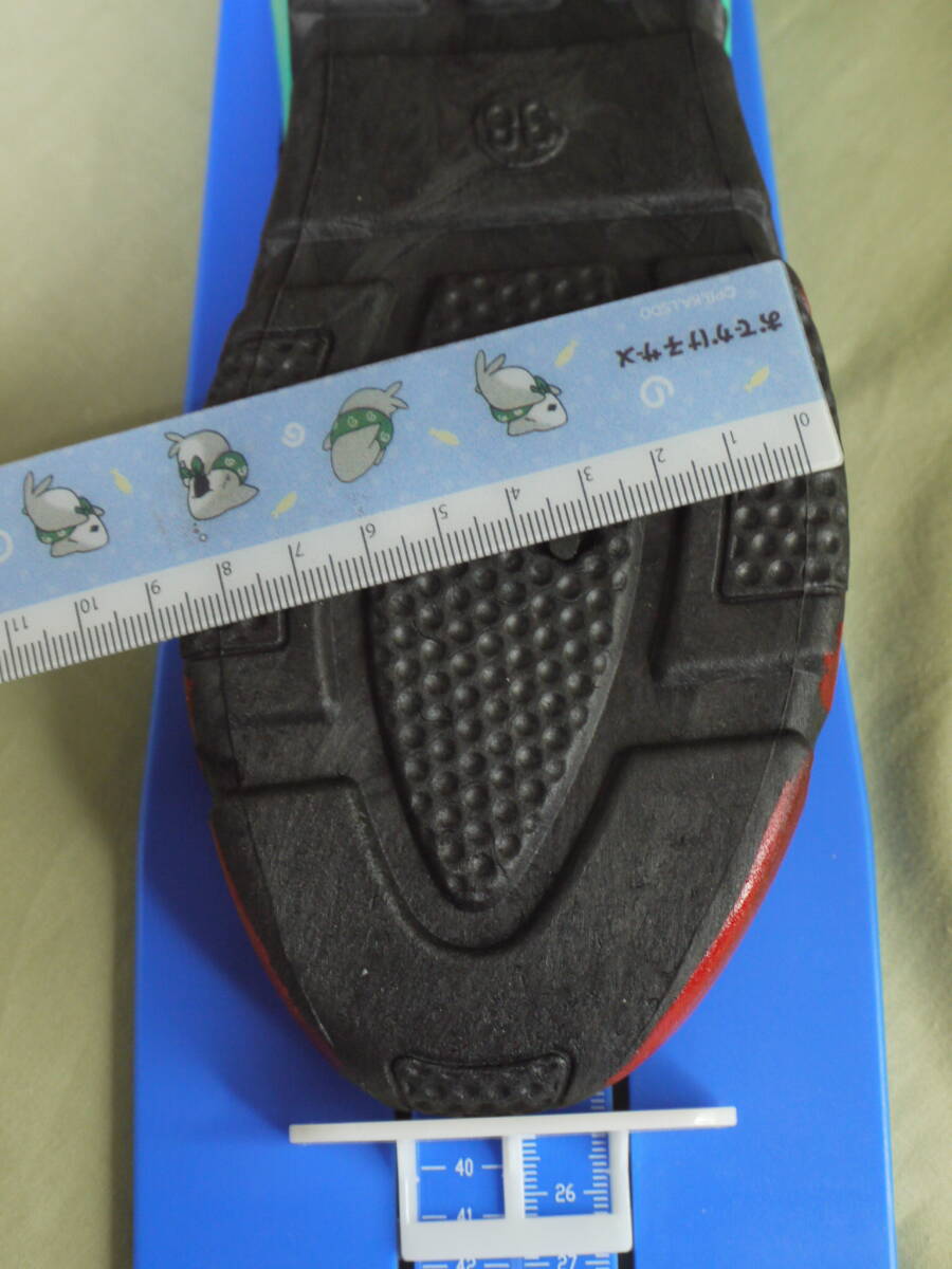 ホ)サイズの合わない靴を無理に履くと外反母趾その他思わぬ障害や怪我をしますので、無理に履かないでください