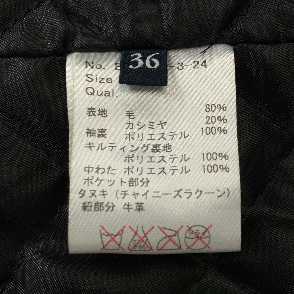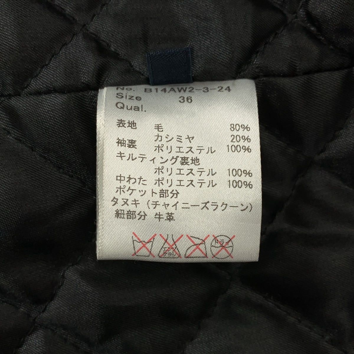 ウール カシミヤ キルティング裏地 ダッフルコート