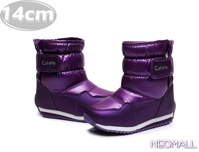 キッズ スノーシューズ 【954】 14.0cm パープル ムートンブーツ スニーカー ウィンターブーツ 裏起毛 防水 防寒 防滑 冬用靴 綿靴