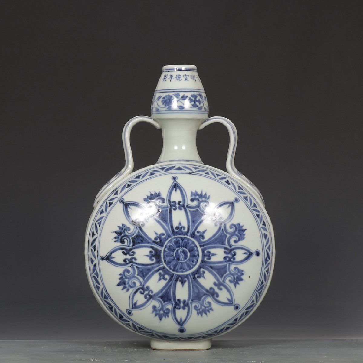 【安】明時代 大明宣徳年製 青花輪花紋双耳抱月瓶 共箱 唐瓷 染付 古陶瓷 中国古美術 古董品 219 サイズ(約寸) |