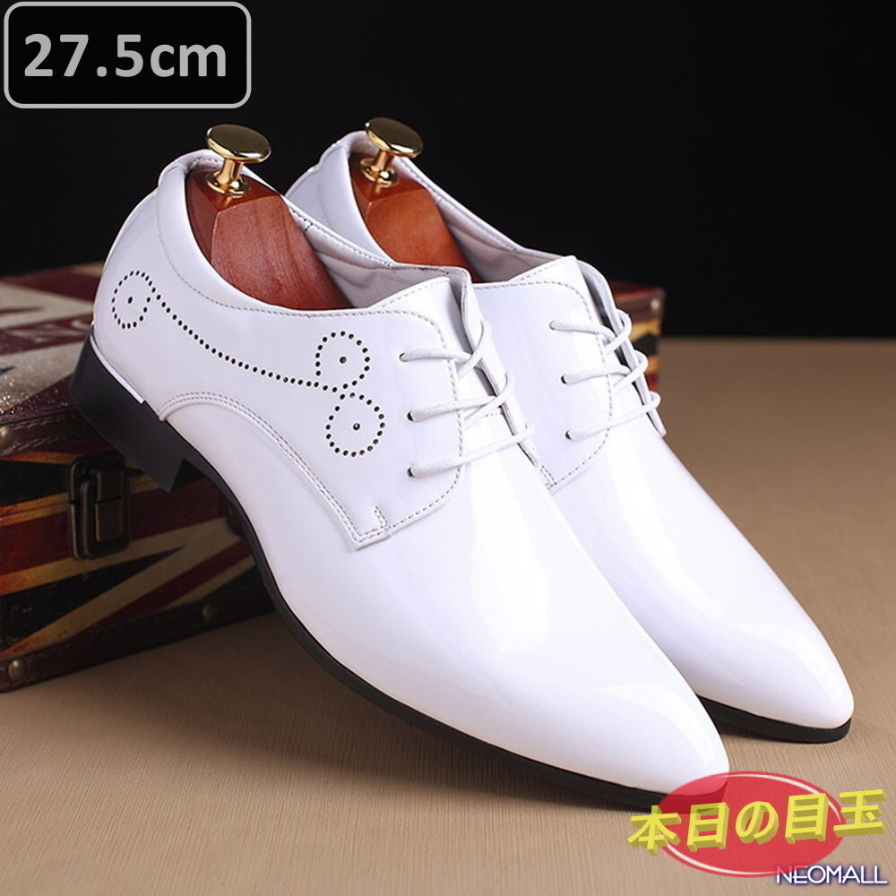 本日の目玉 ☆ メンズ ビジネス レザー シューズ ホワイト サイズ 27.5cm 革靴 靴 カジュアル 屈曲性 通勤 軽量 【443】