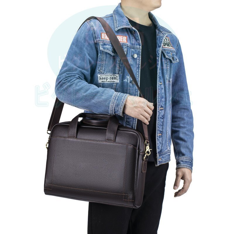 新品◆本革メンズ ビジネスバッグ 高級牛革 手提げ 通勤用 PC対応 14インチ収納 上質デザイン hw1415