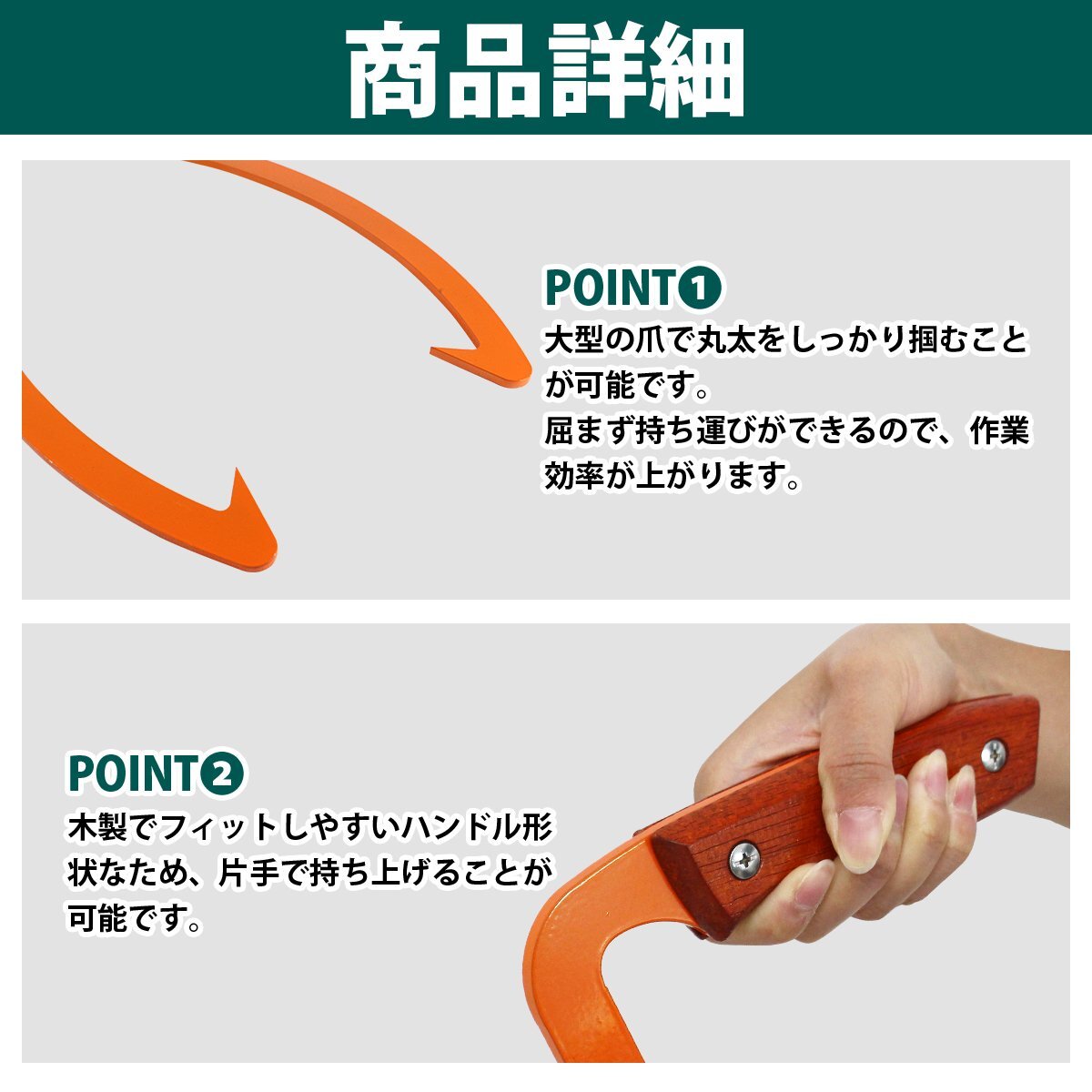 商 品 説 明丸太や薪を掴んで積み上げたり、持ち運ぶ作業などに最適です。