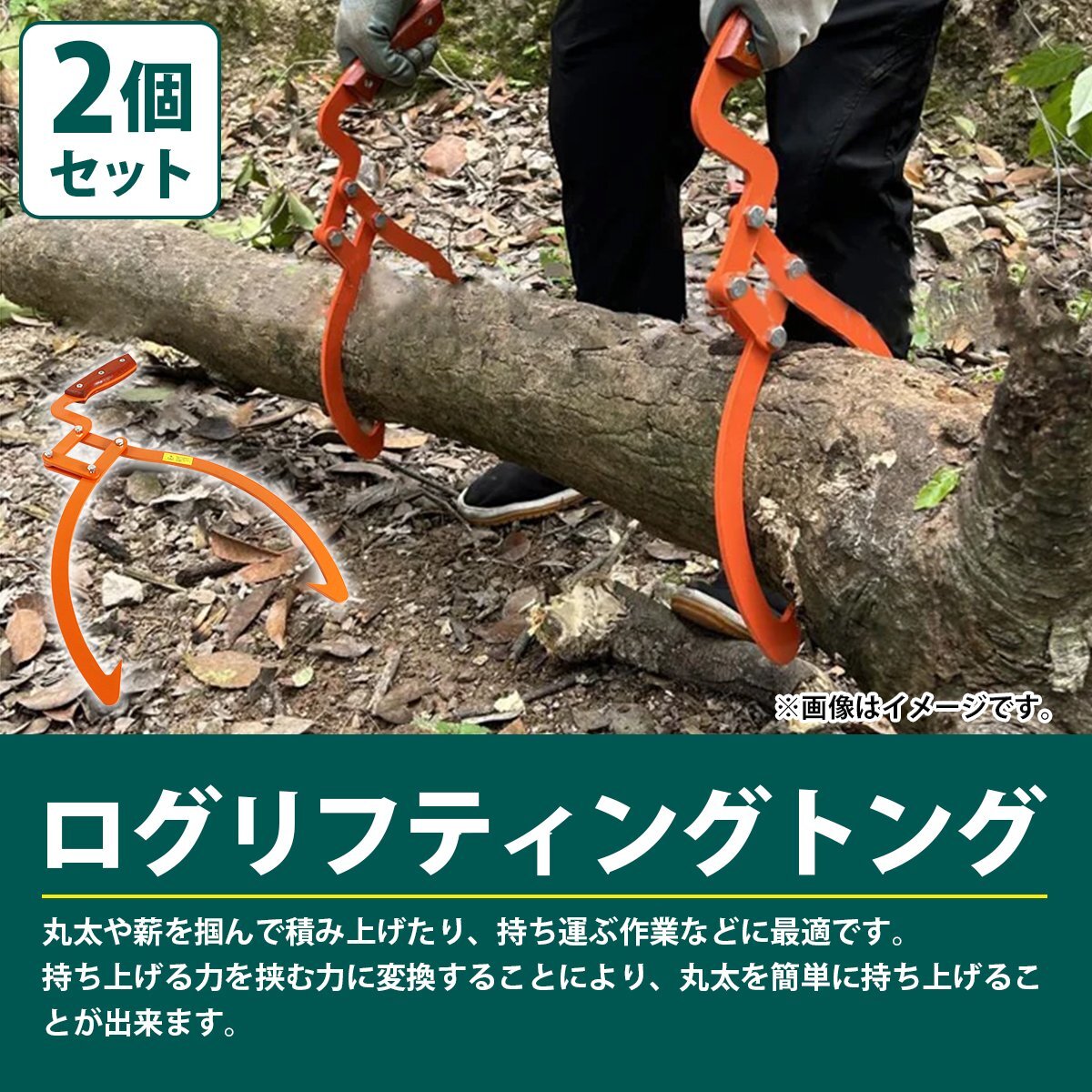 『2本 50cm 20インチ』丸太トング 丸太 木材 原木 リフティング トング 伐採 集材 林業 薪 薪割 移動 ハンド リフト リフター