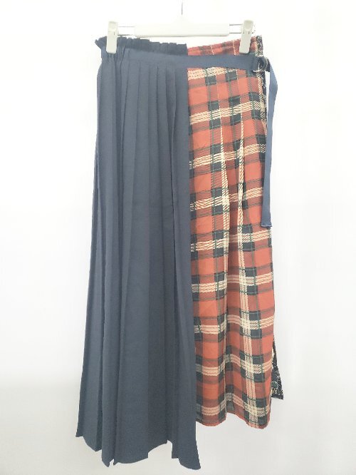 ◇ PAGEBOY ALICIA チェック 花柄 切替 膝下丈 プリーツ スカート サイズF ネイビー レッド マルチ レディース P