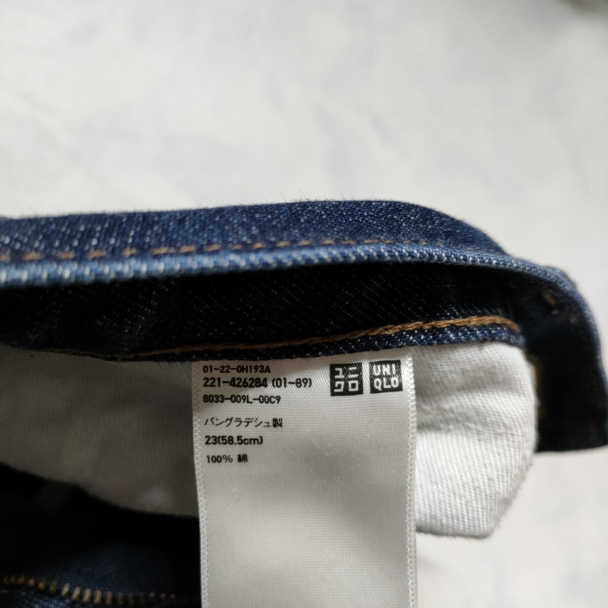 裾にかけてのゆるやかなテーパードラインとドロップウエストで腰まわりがすっきり見える。