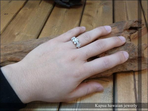 本場ハワイから直輸入したハワイアンジュエリーのプルメリア&ジルコニアリングです。