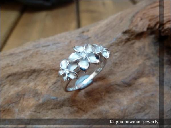 3連プルメリアCZリング★ハワイアンジュエリーシルバー925変色防止加工