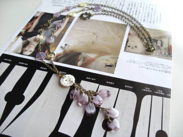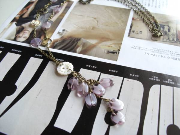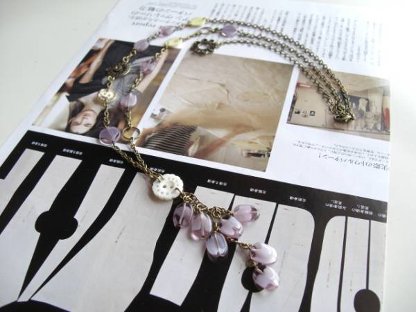 ミランダの日曜日・・シリーズです♪ナチュラル・気分・・シックなチェコビーズと繊細な貝ボタンのネックレスです♪チェコビーズは12ミリ位、レース模様のような透かし彫りの貝ボタンは11ミリ、14ミリ位です♪デザインリングやデザインチャームを合わせてラリエット風のデザインです♪長さは70センチ+アジャスター14センチで最長84センチ位です♪トップは9センチ位です♪お揃いのブレスレットやピアスも出品しています。ハンドメイドをご理解頂いてノークレーム、ノーリターンでお願いします