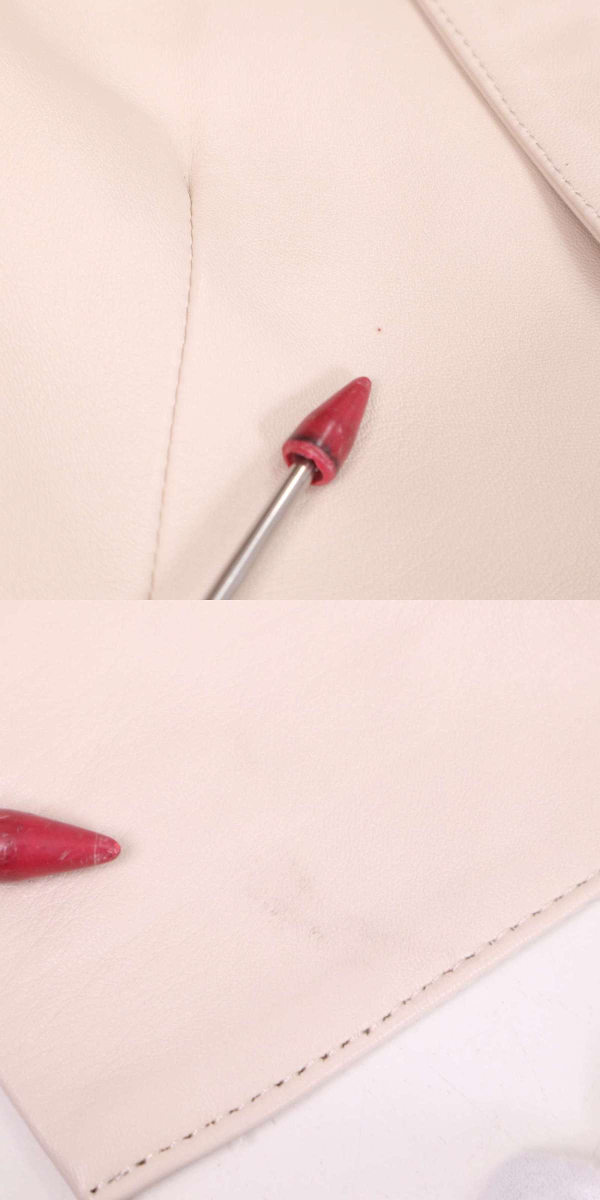 胸にごく小さな汚れ、後ろ裾にごく薄い汚れがございます。着用に問題はございません。