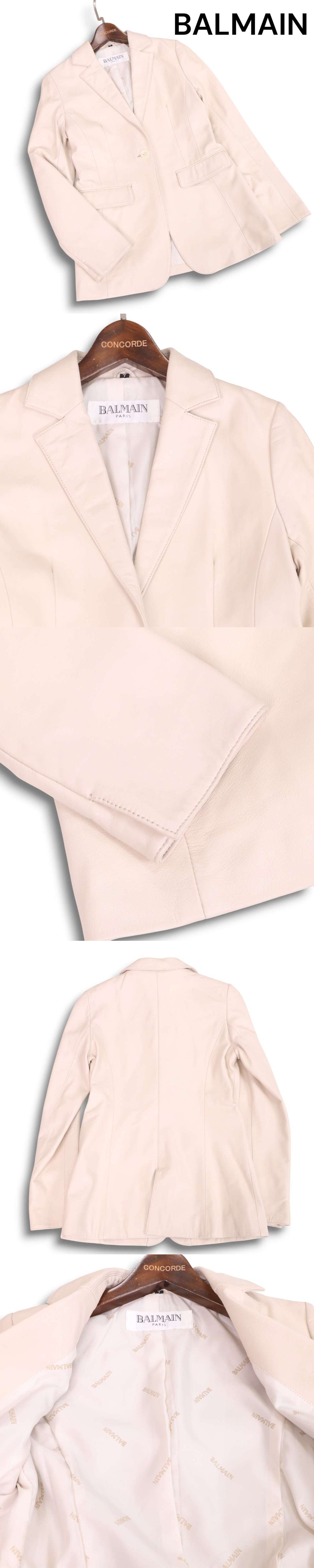 BALMAIN PARIS バルマン 秋冬★ 羊革 ラム レザー テーラード ジャケット Sz.7 レディース