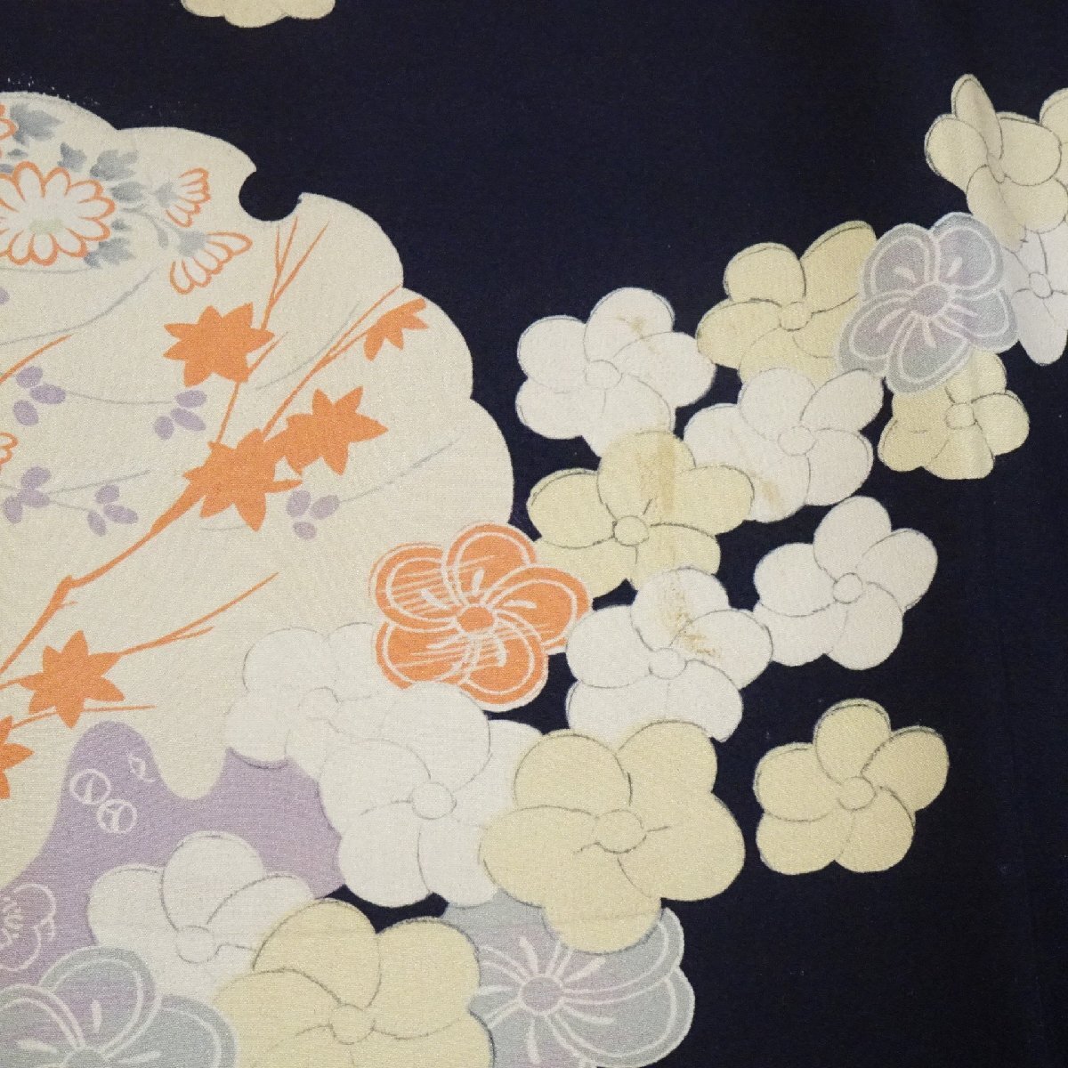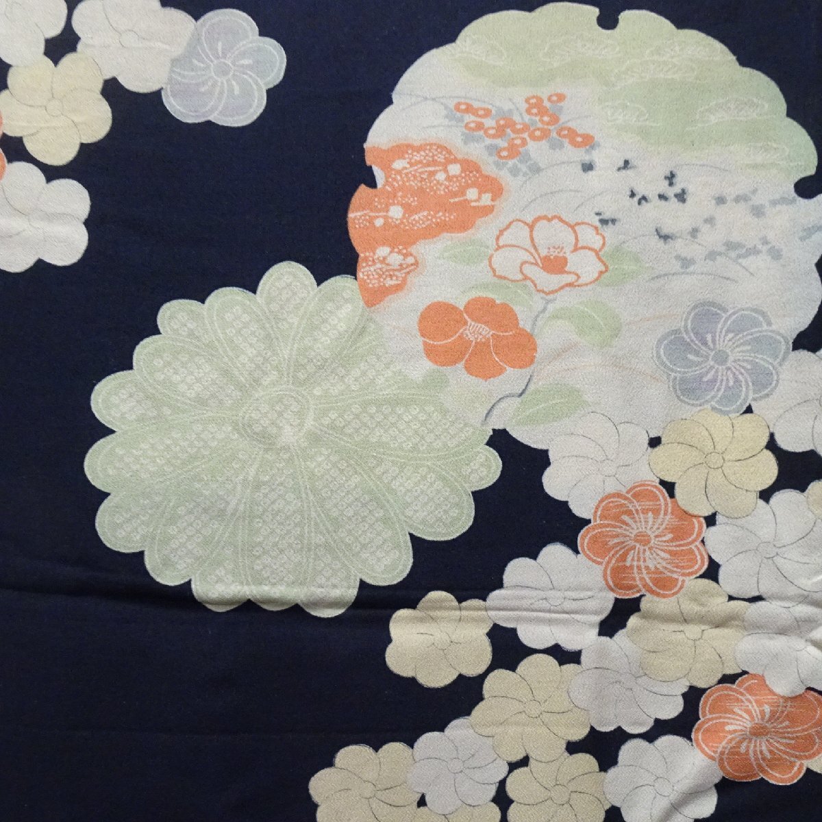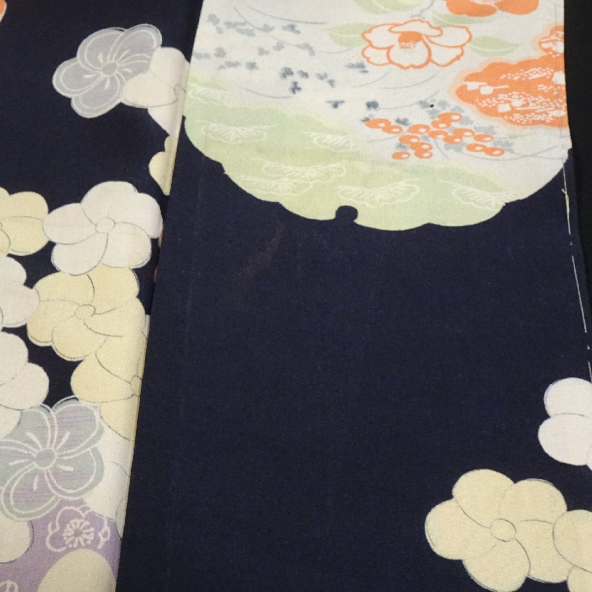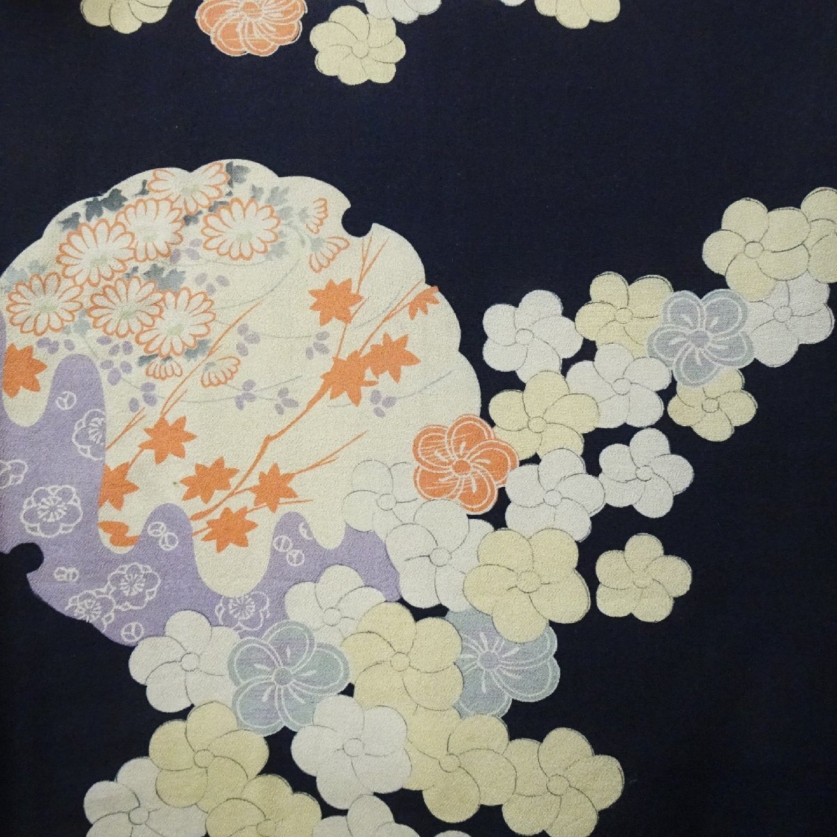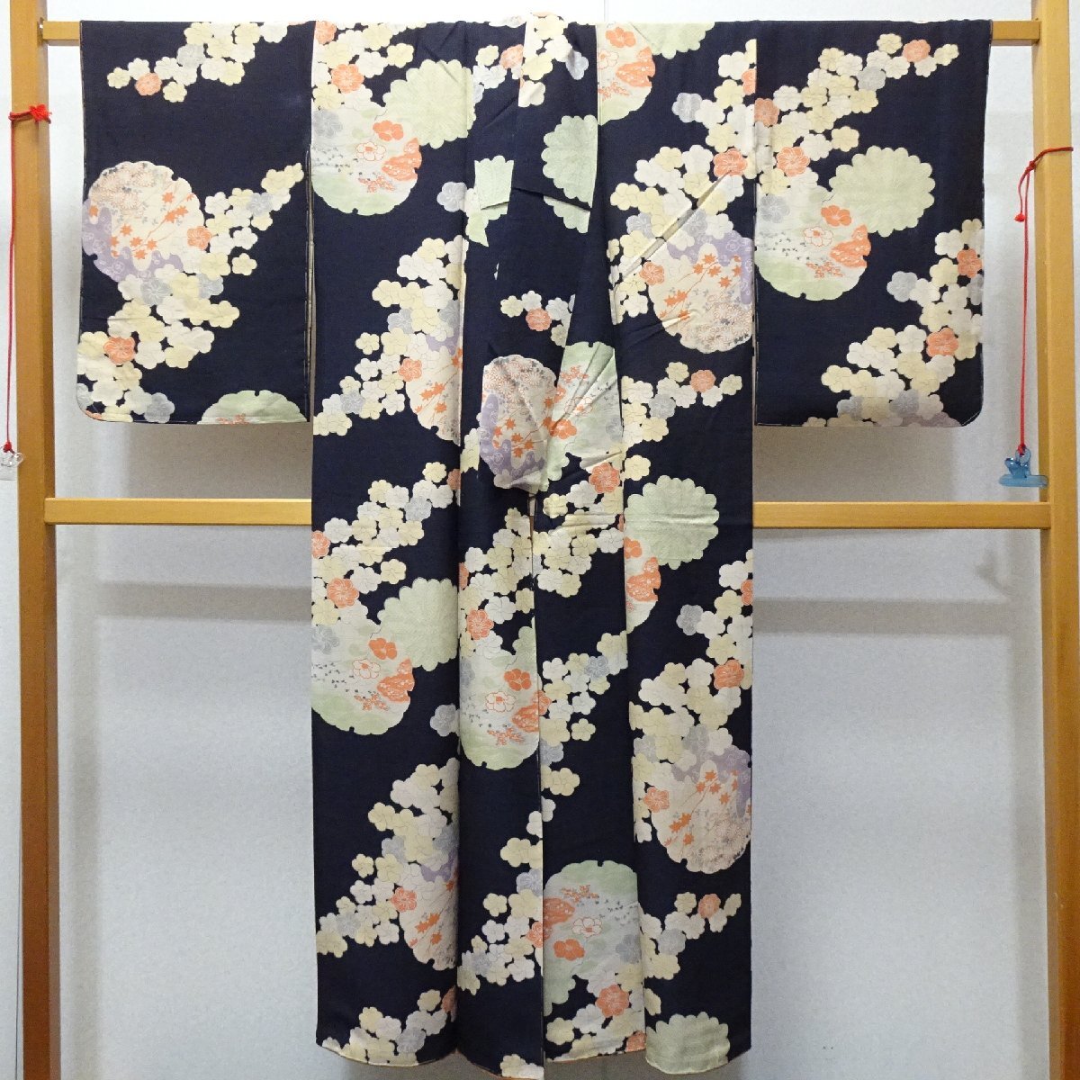 アンティーク 錦紗 着物 雪輪紋 梅 菊