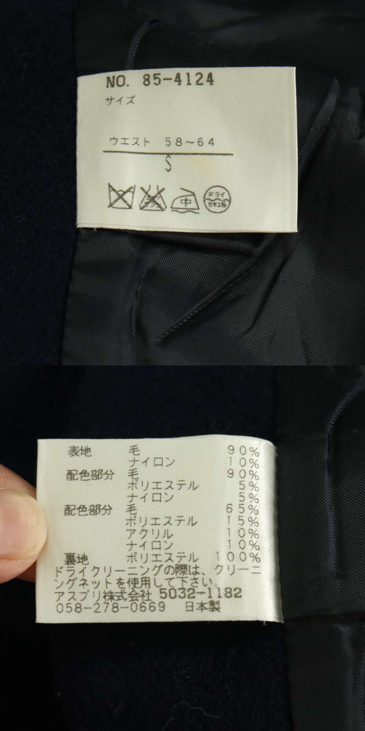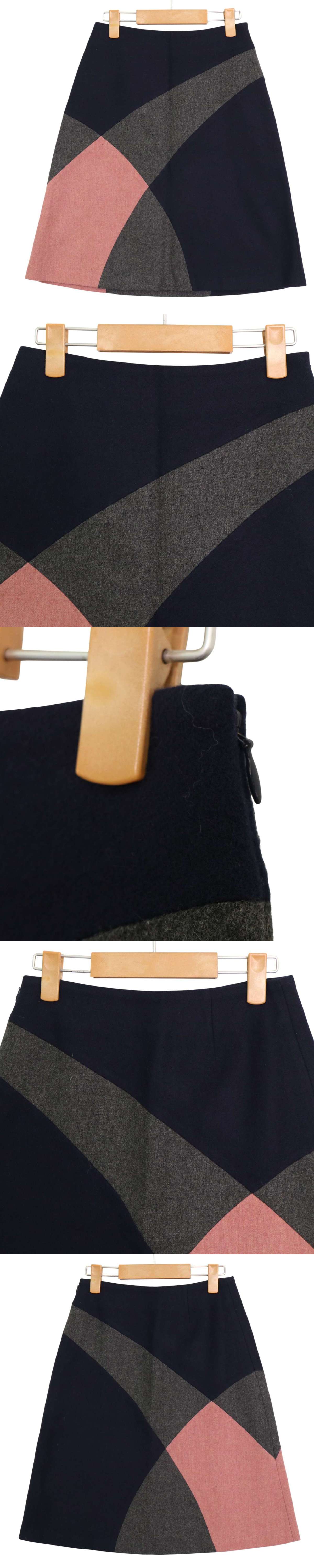 レディースブランド 秋冬 ウール★ カラーブロック Aライン スカート Sz.S レディース 日本製