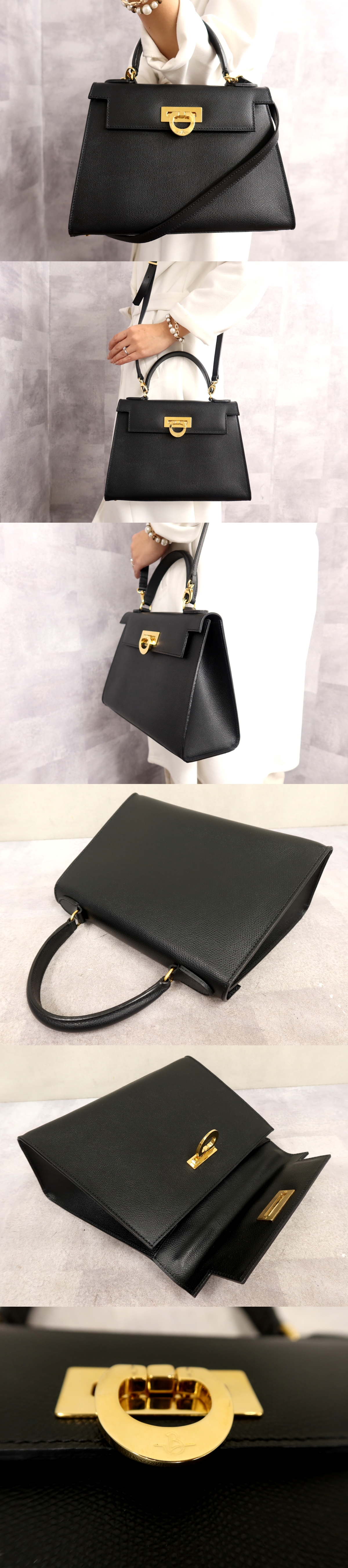 ●超美品●CARBOTTI カルボッティ●フラップ●カーフ レザー 本革●2way ハンド バッグ●黒●ゴールド金具●肩掛け●収納 かばん●Js63344
