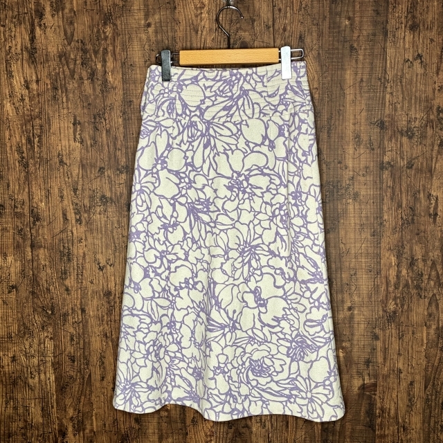 M64◇VOICEMAIL | ボイスメール フラワージャガードスカート アイボリー×ラベンダー レディース USA6サイズ 中古品